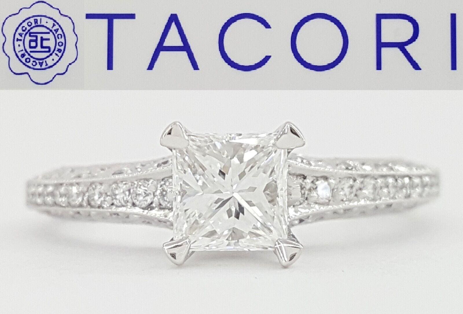 Tacori Classic Crescent Princess Cut Diamond Engagement Ring Platinum 1 ct 9.2K