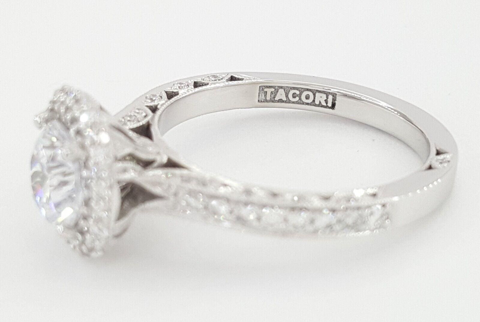 You are Purchasing a TACORI Crescent HT2522CU55 0.52 ct Total Weight Semi-Mount Diamond 18k White Gold Engagement Ring.