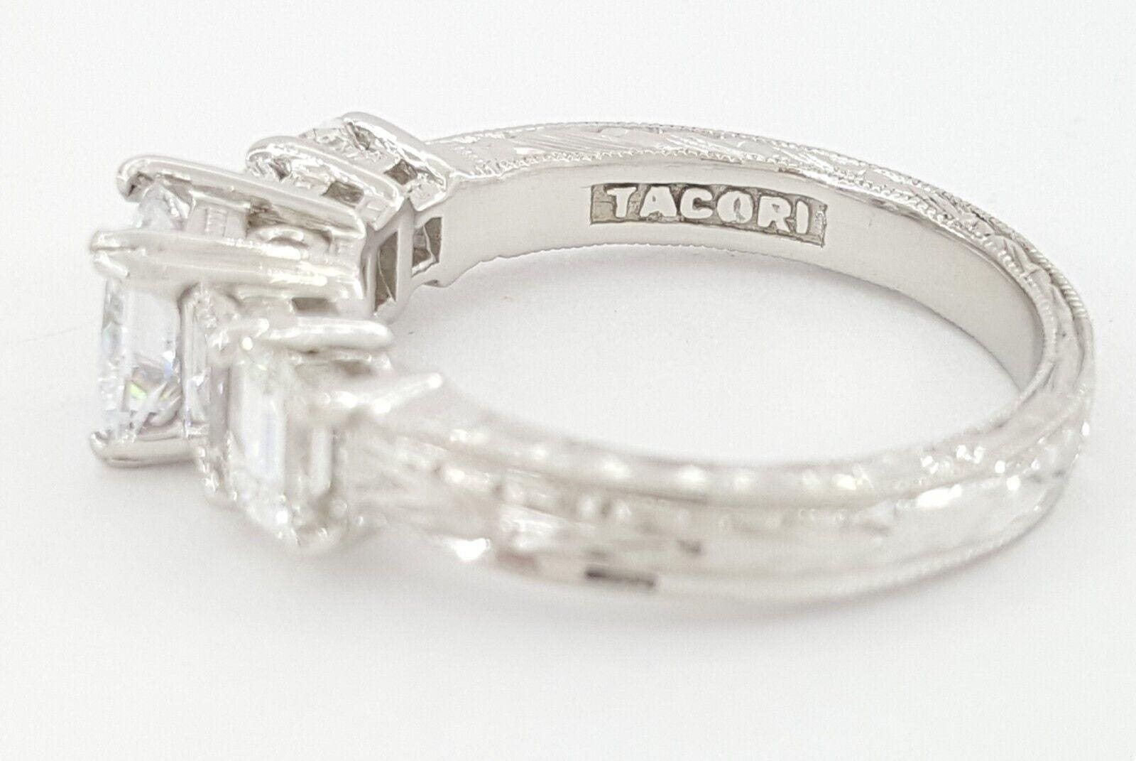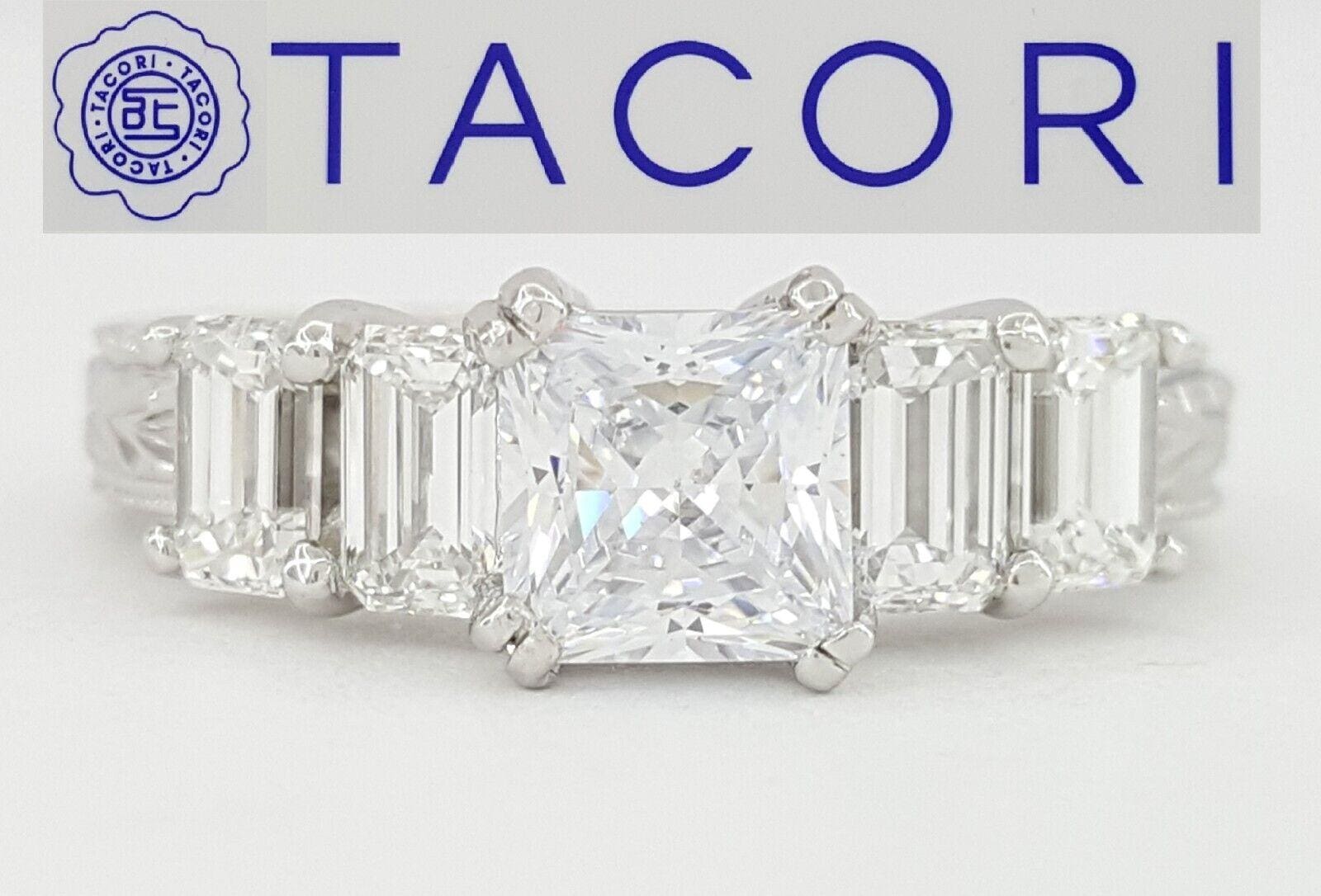 You are Purchasing a TACORI 1 ct Total Weight Platinum Semi-Mount Princess Diamond Engagement Ring.