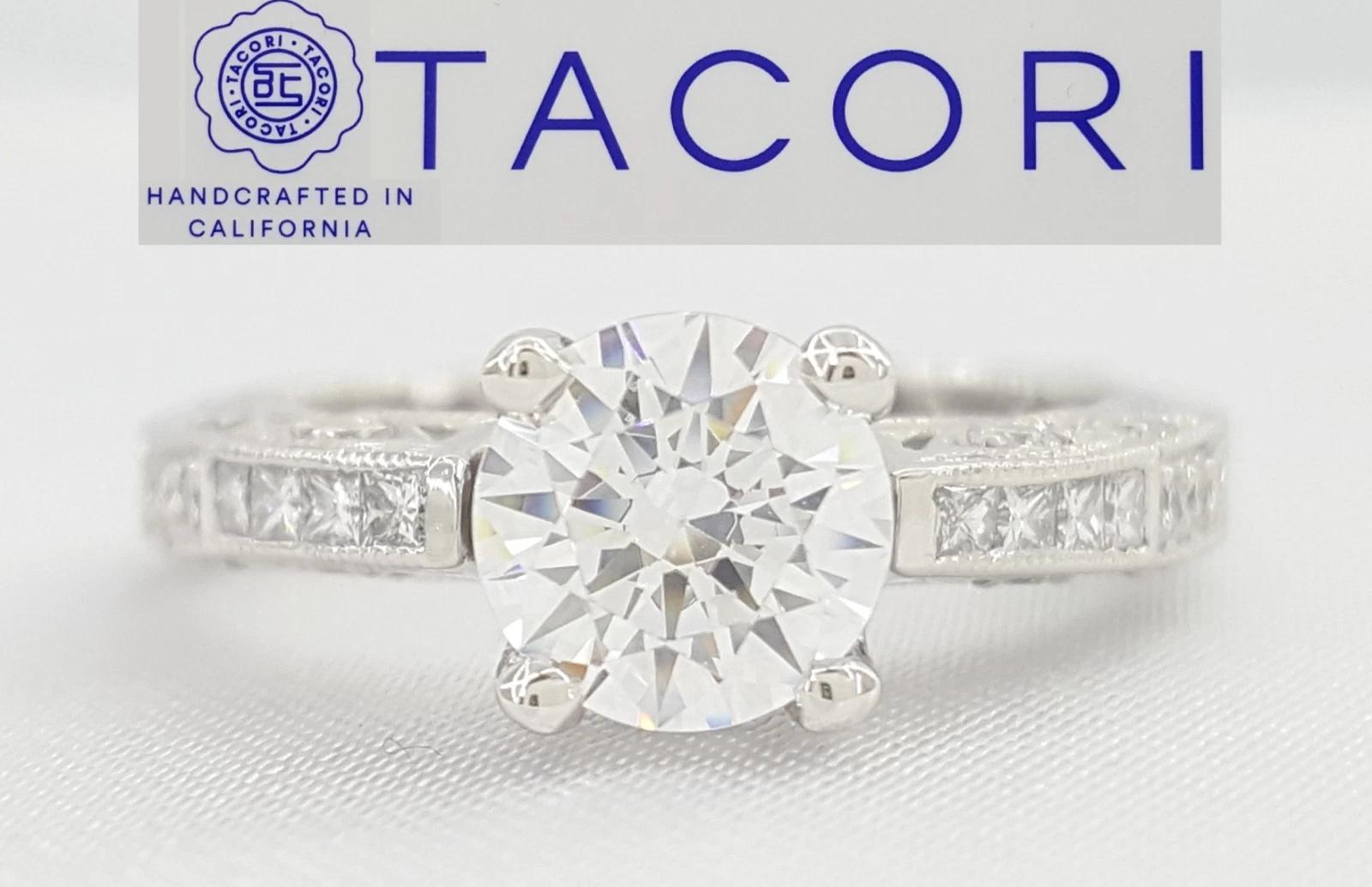 The ring is stamped "Tacori" and "Plat".