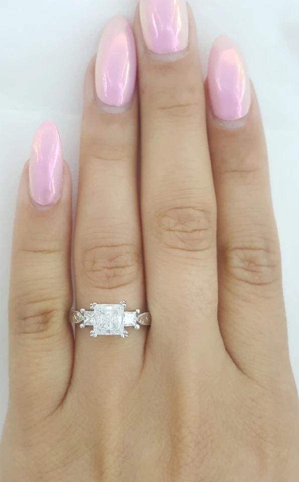 The mounting has 2 Princess cut side diamonds weighing approximately 0.3 ct, G+ in color, VS2+ in clarity. We can resize this ring to most finger sizes.