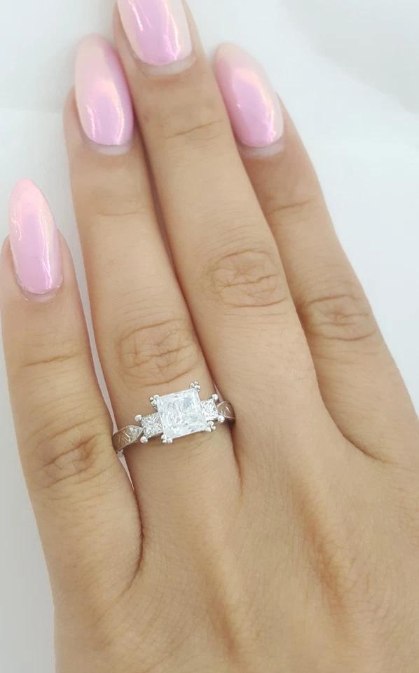 The mounting has 2 Princess cut side diamonds weighing approximately 0.3 ct, G+ in color, VS2+ in clarity. We can resize this ring to most finger sizes.