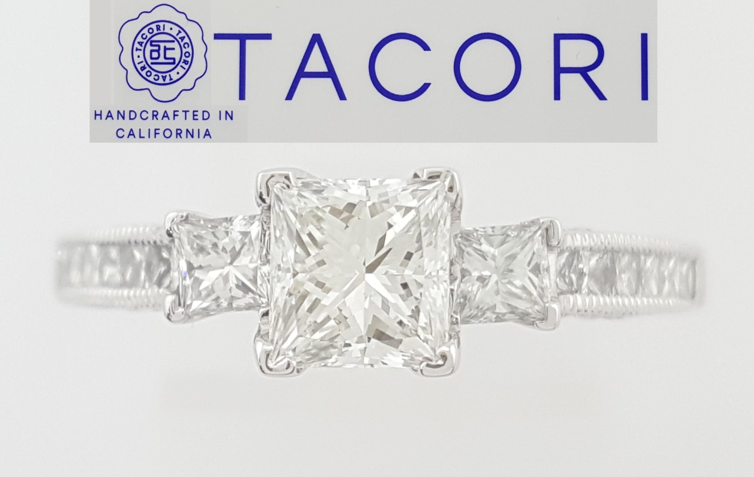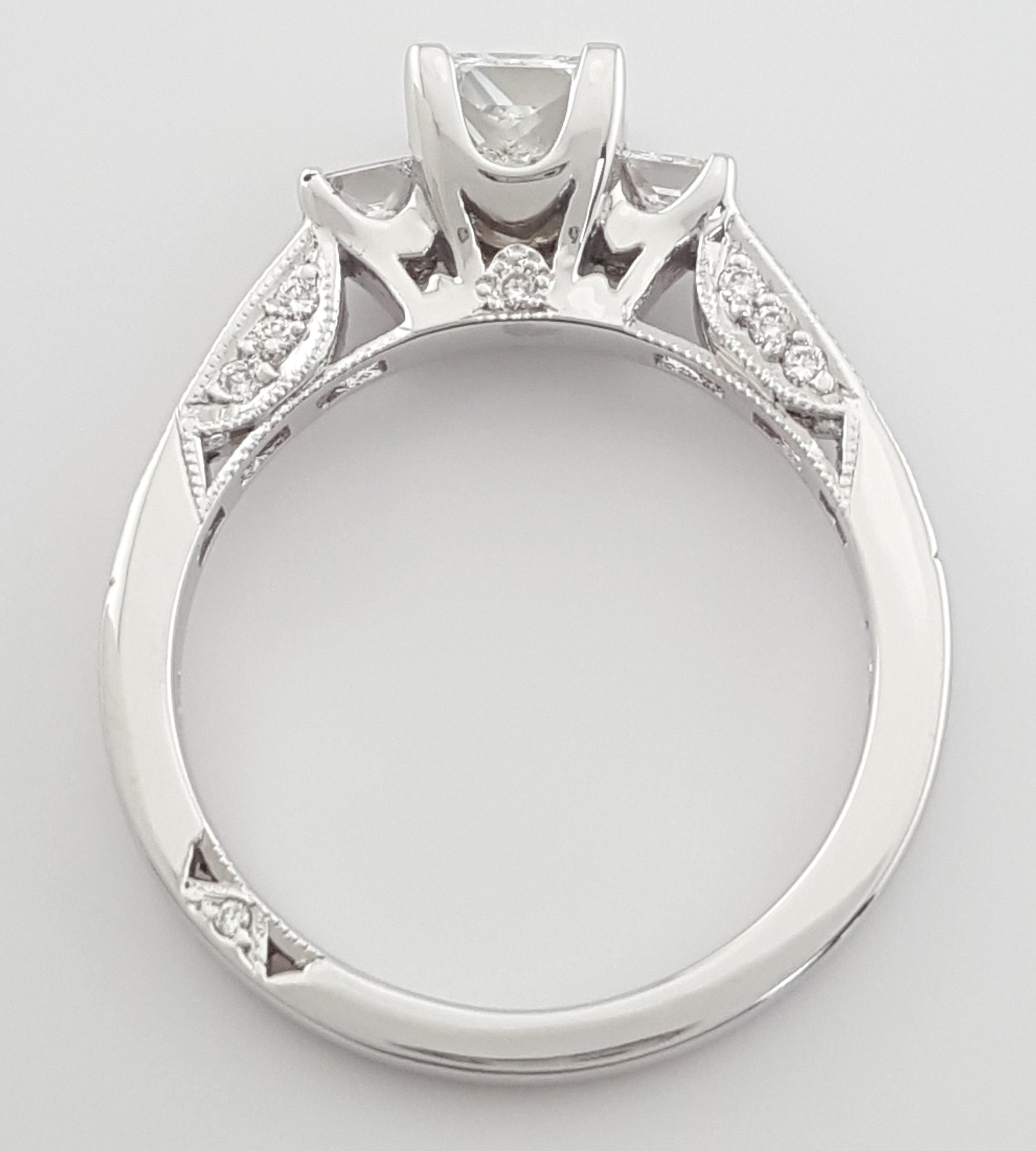 You are Purchasing a Tacori 1.3 ct Total Weight Princess Brilliant Cut Three Stone Diamond 18k White Gold Engagement Ring GIA.