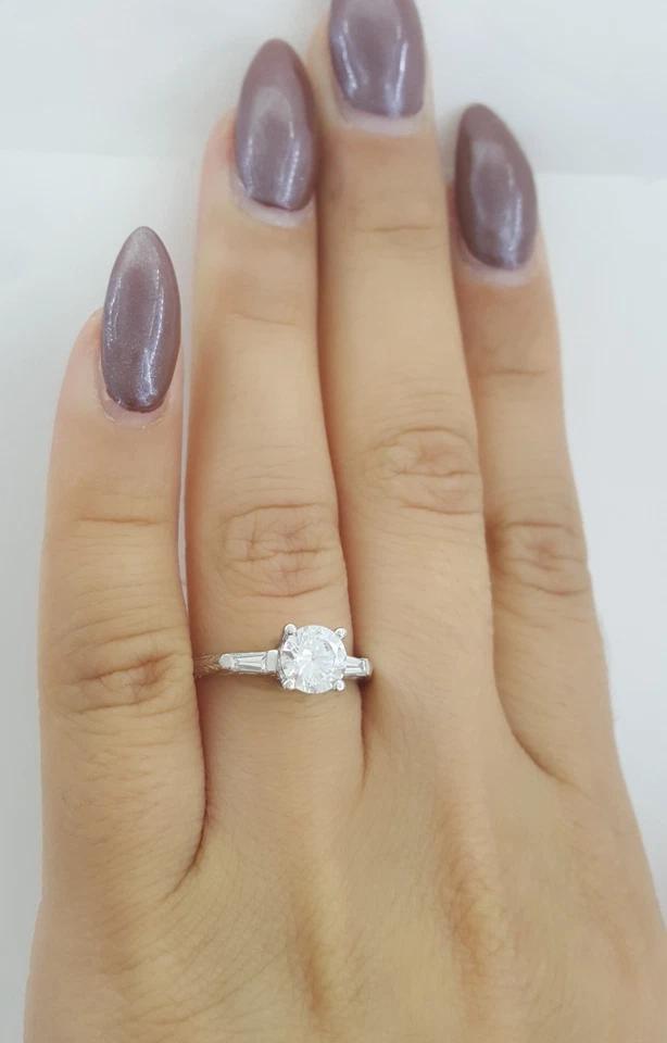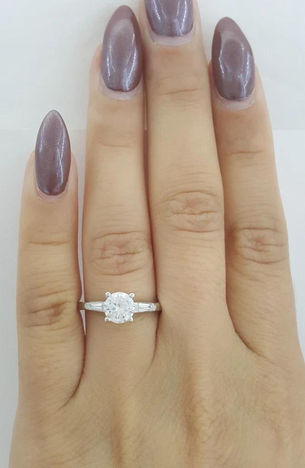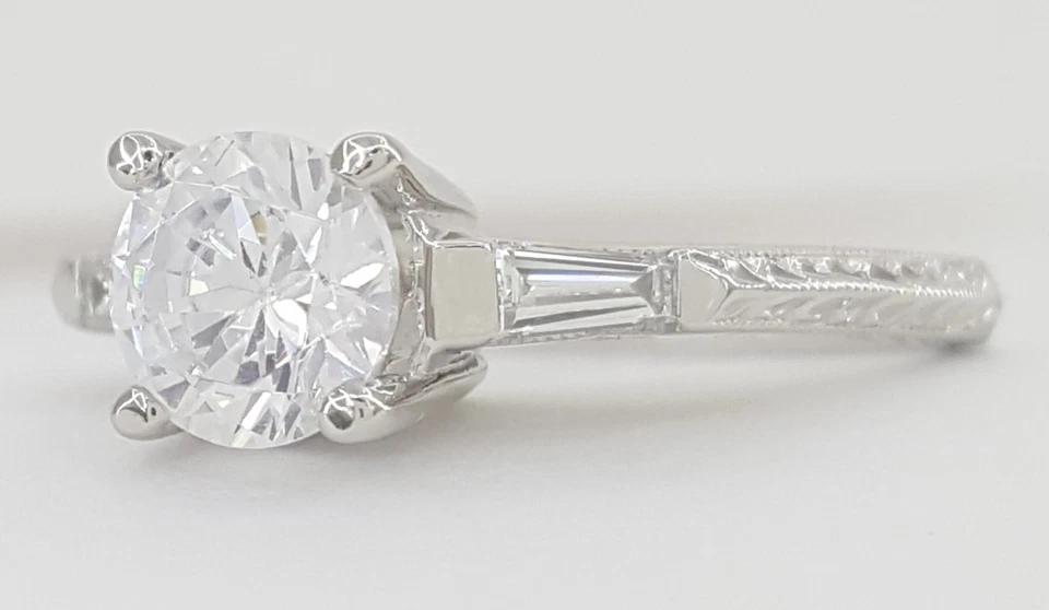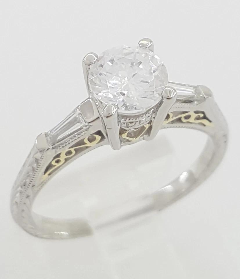 The ring mounting has 2 Natural Tapered Baguette cut side diamonds weighing ~0.17 ct, G+ in color, VS2+ in clarity.