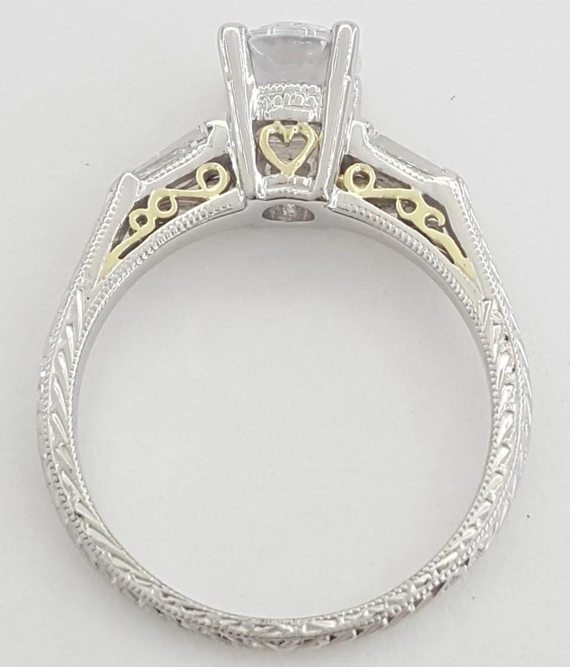 You are Purchasing a Tacori Round Semi-Mount Three Stone 0.17 ct Plat & 18k Engagement Ring