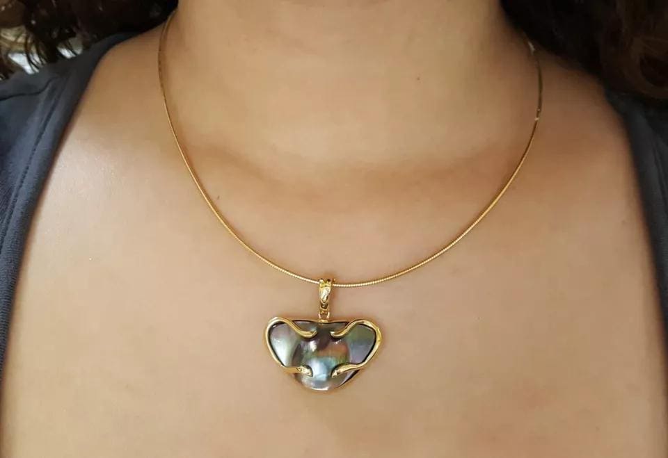 You are buying a Sauve Tahitian Mabe Blister Pearl Slider Enchanter Pendant Necklace in 14k Yellow Gold