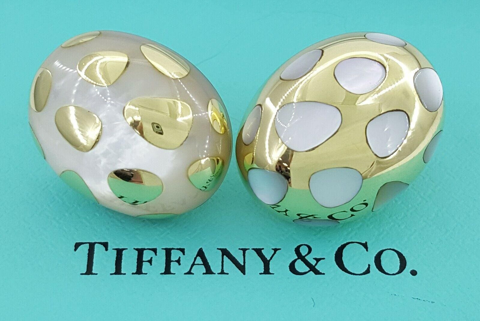 You are Buying an **Tiffany & Co. 18k Yellow Gold Mother of Pearl Gold Positive Negative Earrings.**