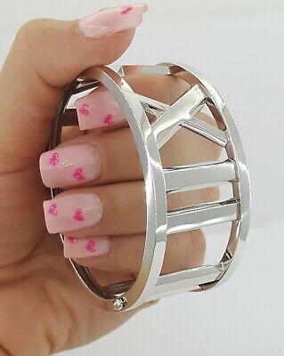 The width of the bracelet is 29.7 mm wide & the thickness is 3.3 mm - 2.3 mm. The clasp is stamped "ATLAS ©2003 TIFFANY&CO. 750 ITALY".