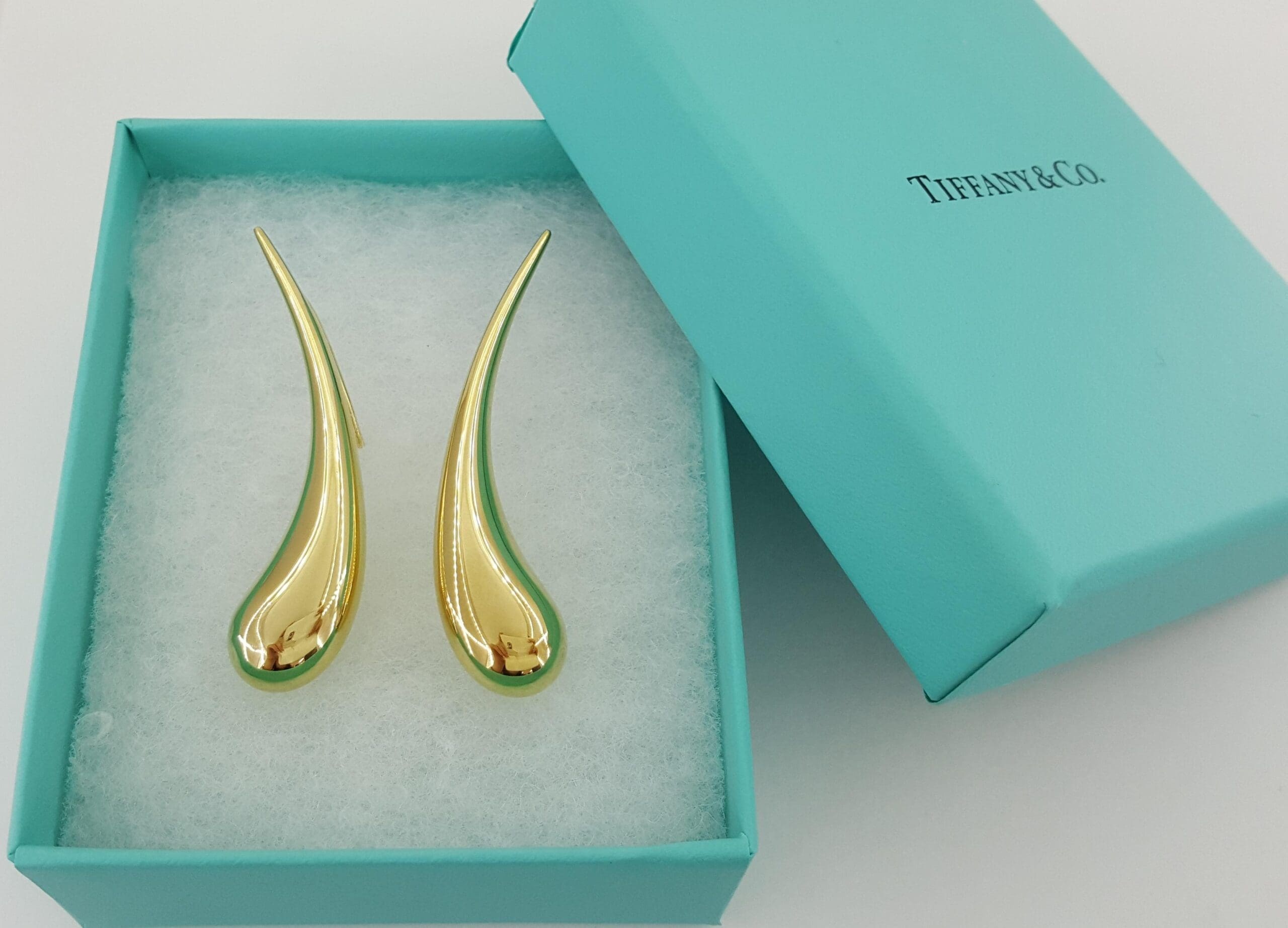 You are Buying an Authentic Tiffany & Co Else Peretti Teardrop 18K Yellow Gold Hook Earrings