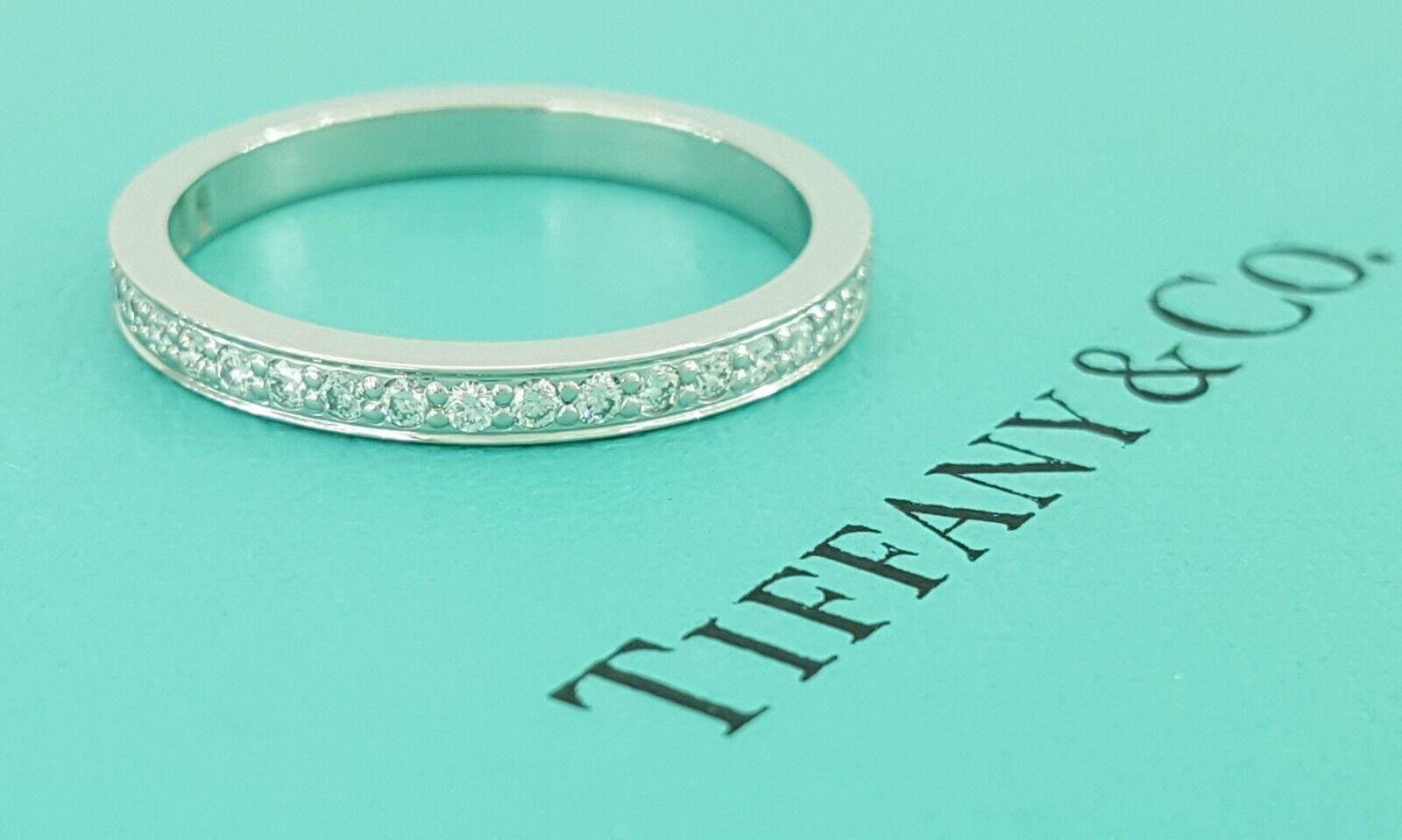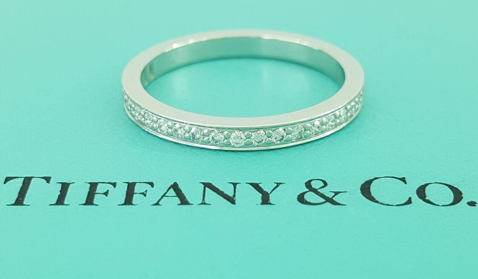 You are Purchasing a 100% Authentic Tiffany & Co Platinum 0.22 ct Total Weight Round Diamond Bead Set Half Circle Wedding / Anniversary Band / Ring.