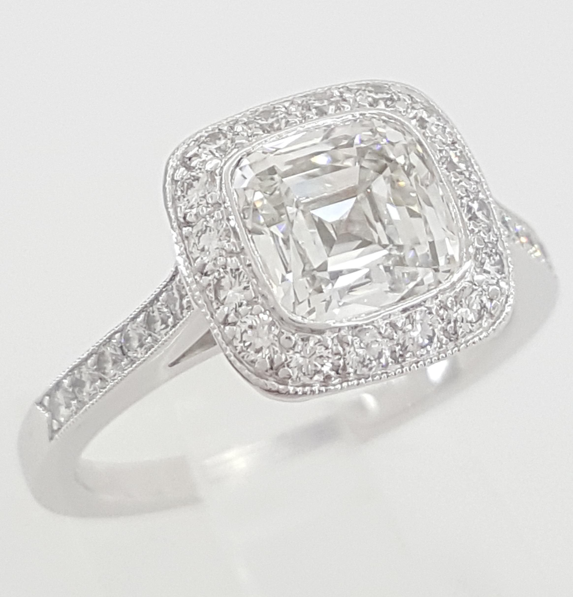 You are Buying an Authentic Tiffany & Co. 2.16 ct Total Weight Platinum Legacy Cushion Brilliant Cut Diamond Engagement Ring.