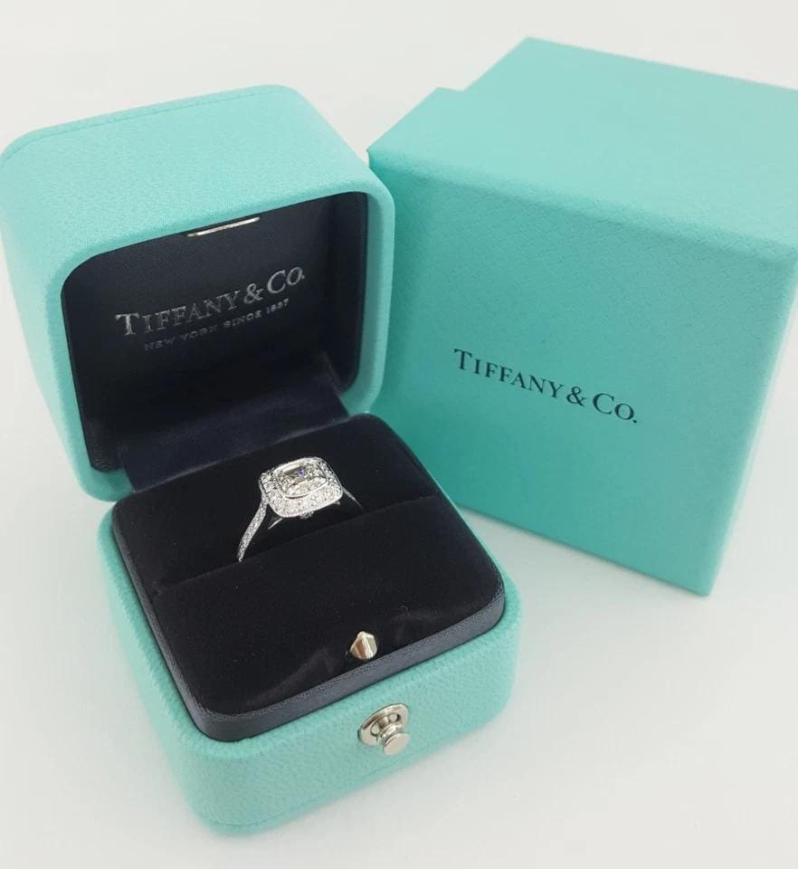 Tiffany & Co Legacy Cushion Diamond Halo Engagement Ring 1.44 ct Retail $17,400