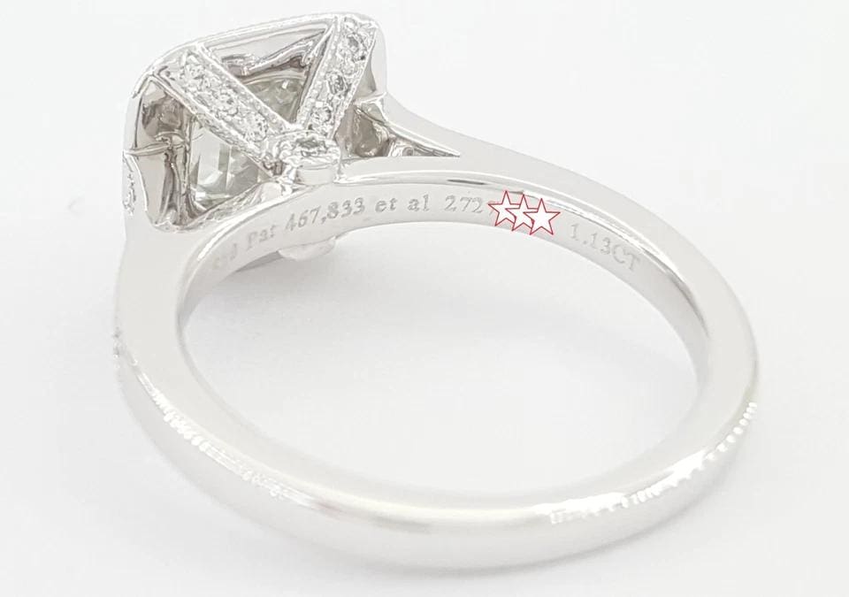 The ring is stamped"©TIFFANY&Co. PT950 Pat 5970744 et al 2729**** D1.05 CT"