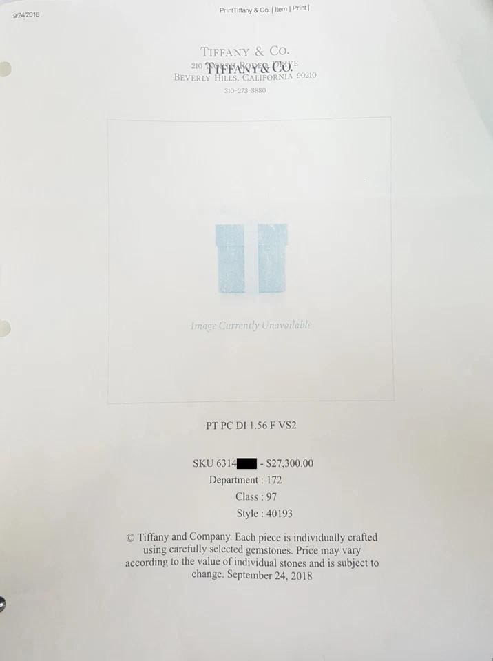 The ring comes with Copy of T&Co Diamond Report, Original Receipt, & T&Co. box, it was sold for $27,300 +tax back in 2018.