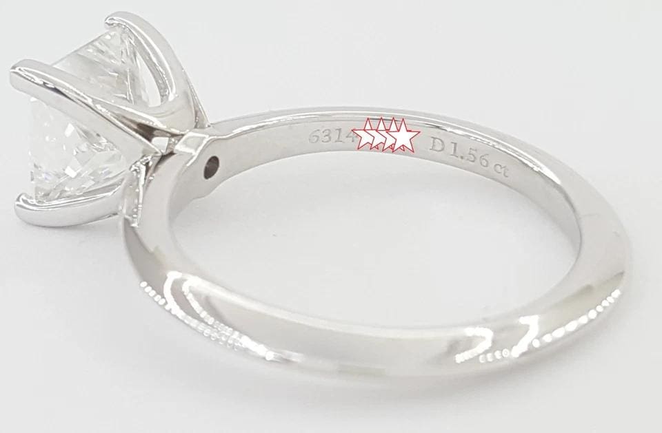 The ring is stamped "TIFFANY & CO. Pt950" & "6314**** D1.56ct".