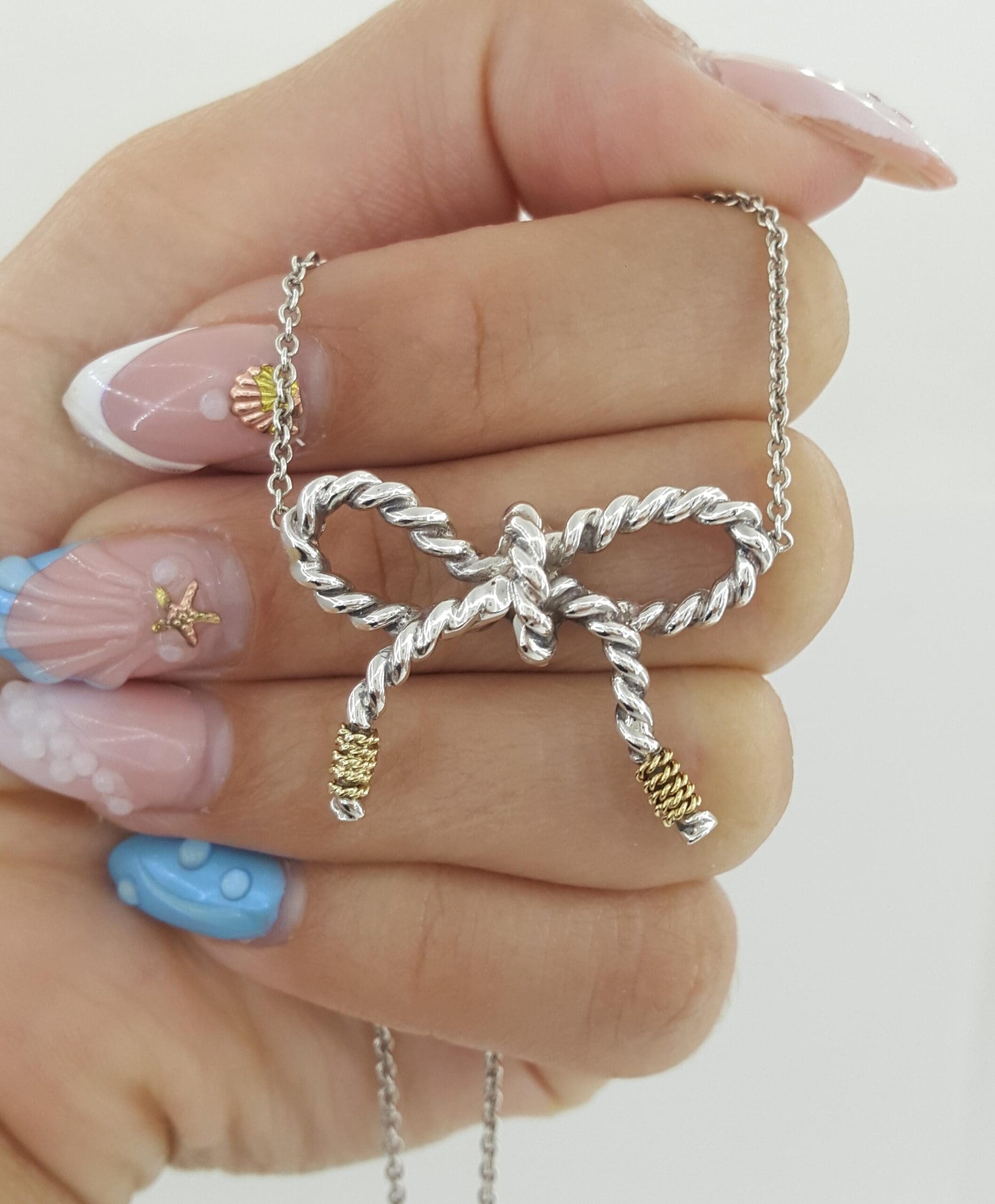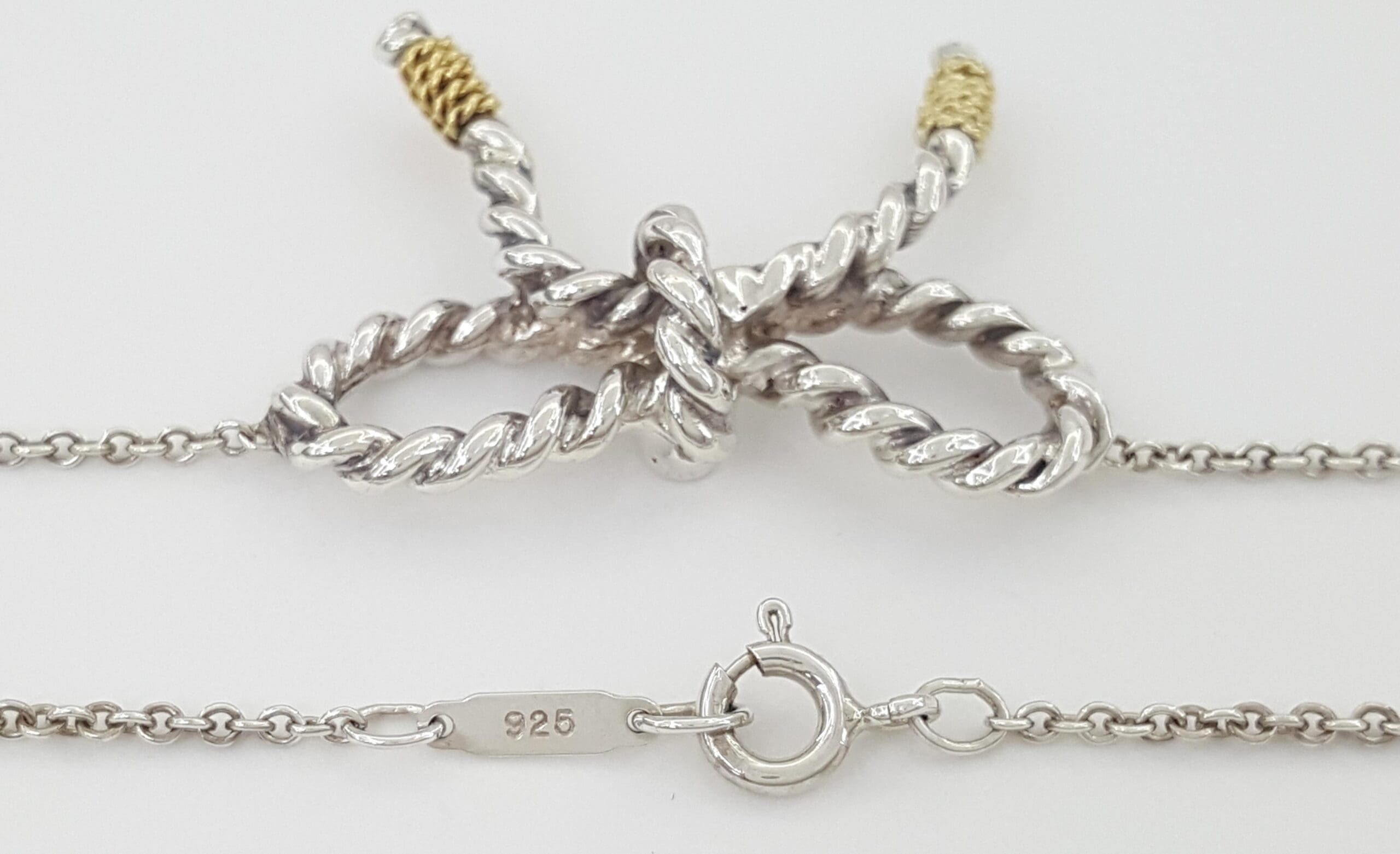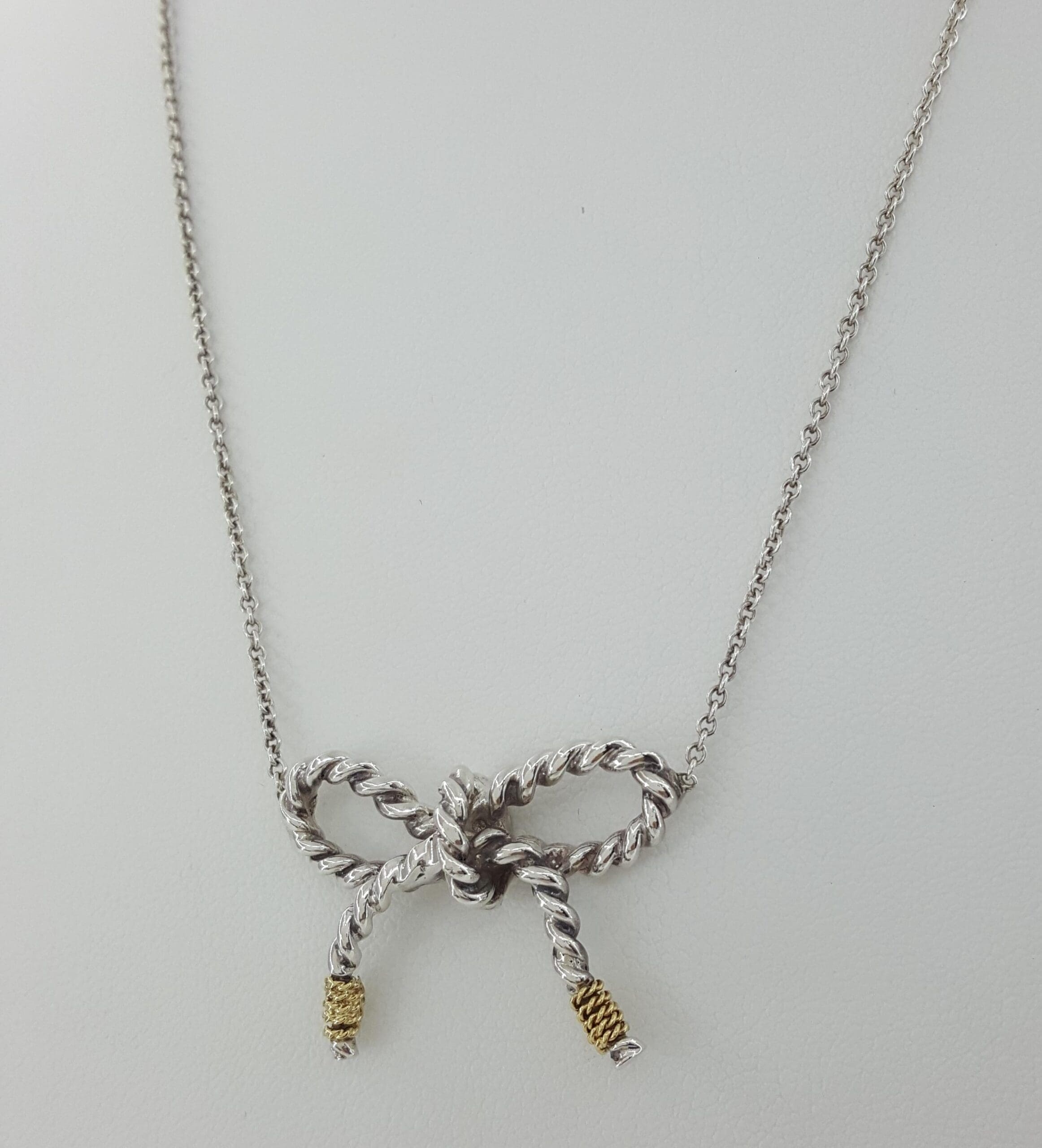 Tiffany & Co Rope Ribbon Bow Pendant Necklace Silver & 18K Gold 18″