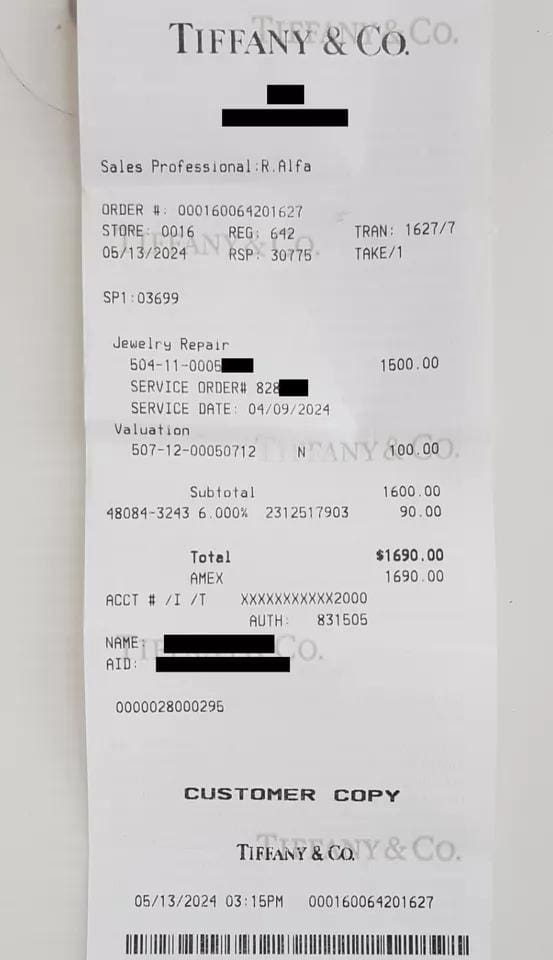 The ring is stamped "©TIFFANY & CO. PT 950" & "D80**** D 4.49CT". Comes with Original Tiffany & Co. Diamond Valuation Report, a New Updated Valuation Report on May 16, 2024, New GIA Certificate, Receipt from Tiffany for the new setting & valuation report, inner & outer ring box. The diamond was originally sold in 1988 by Tiffany, the new Tiffany setting was made in May 16, 2024, this ring hasn't been worn since.
