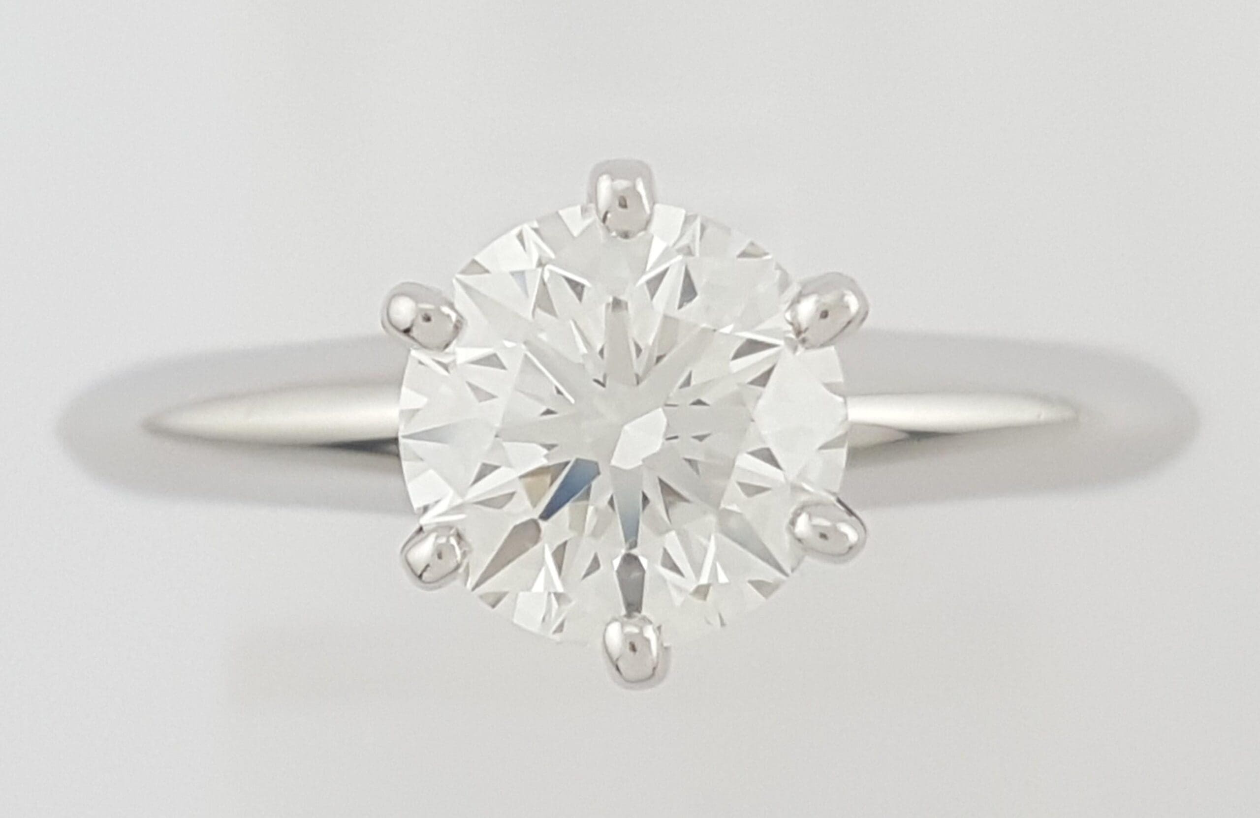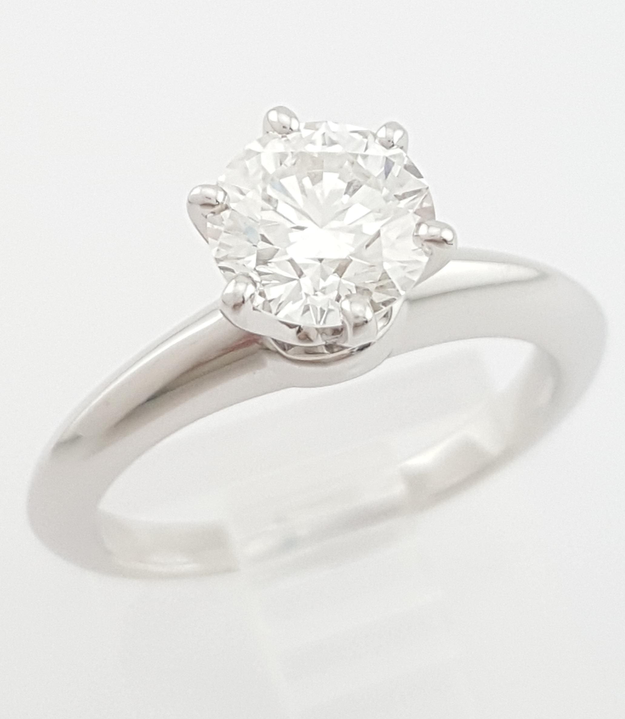 You are Buying an Authentic Tiffany & Co. 1.01 ct Total Weight Platinum Round Brilliant Cut Diamond Solitaire Engagement Ring.