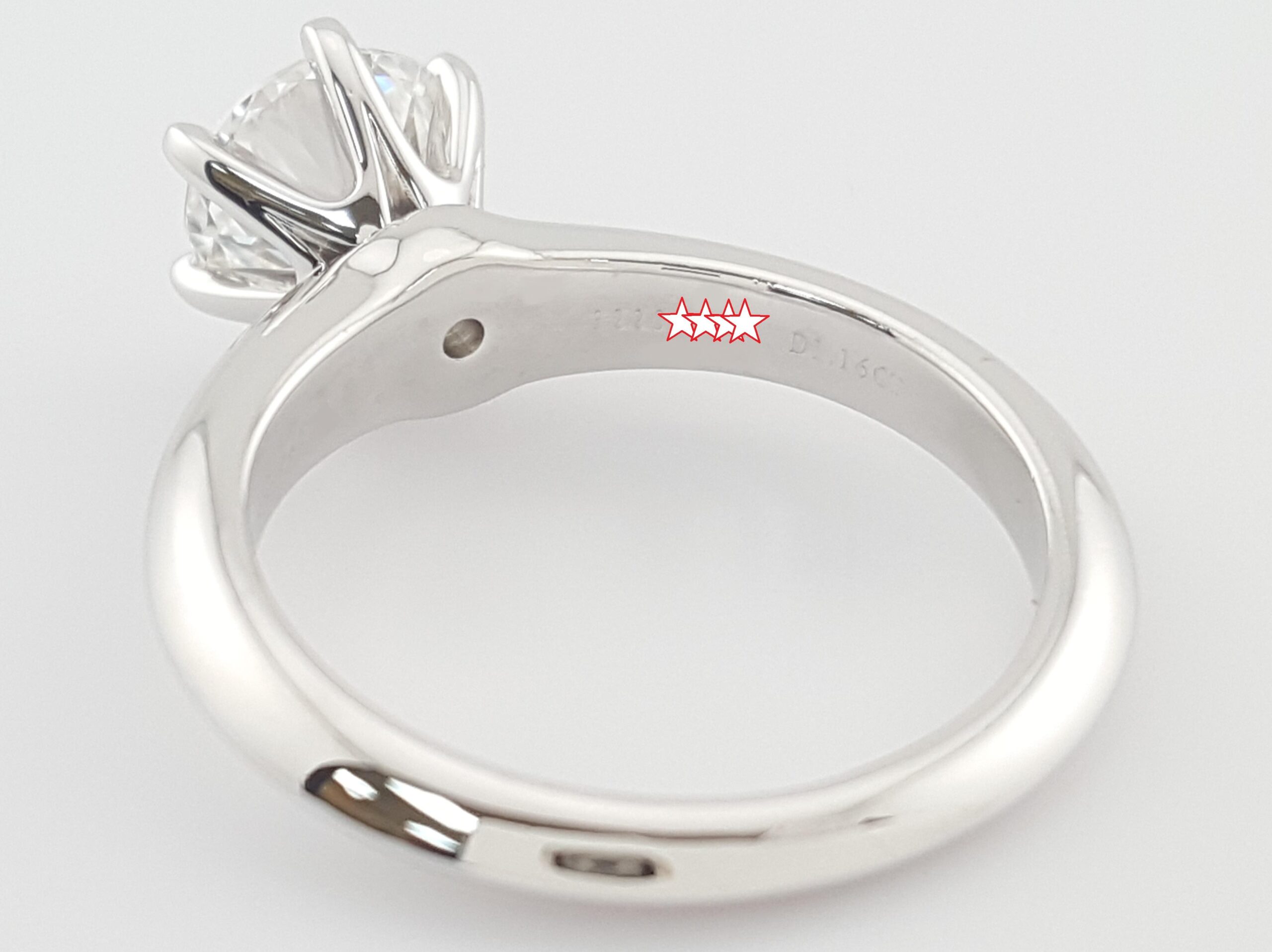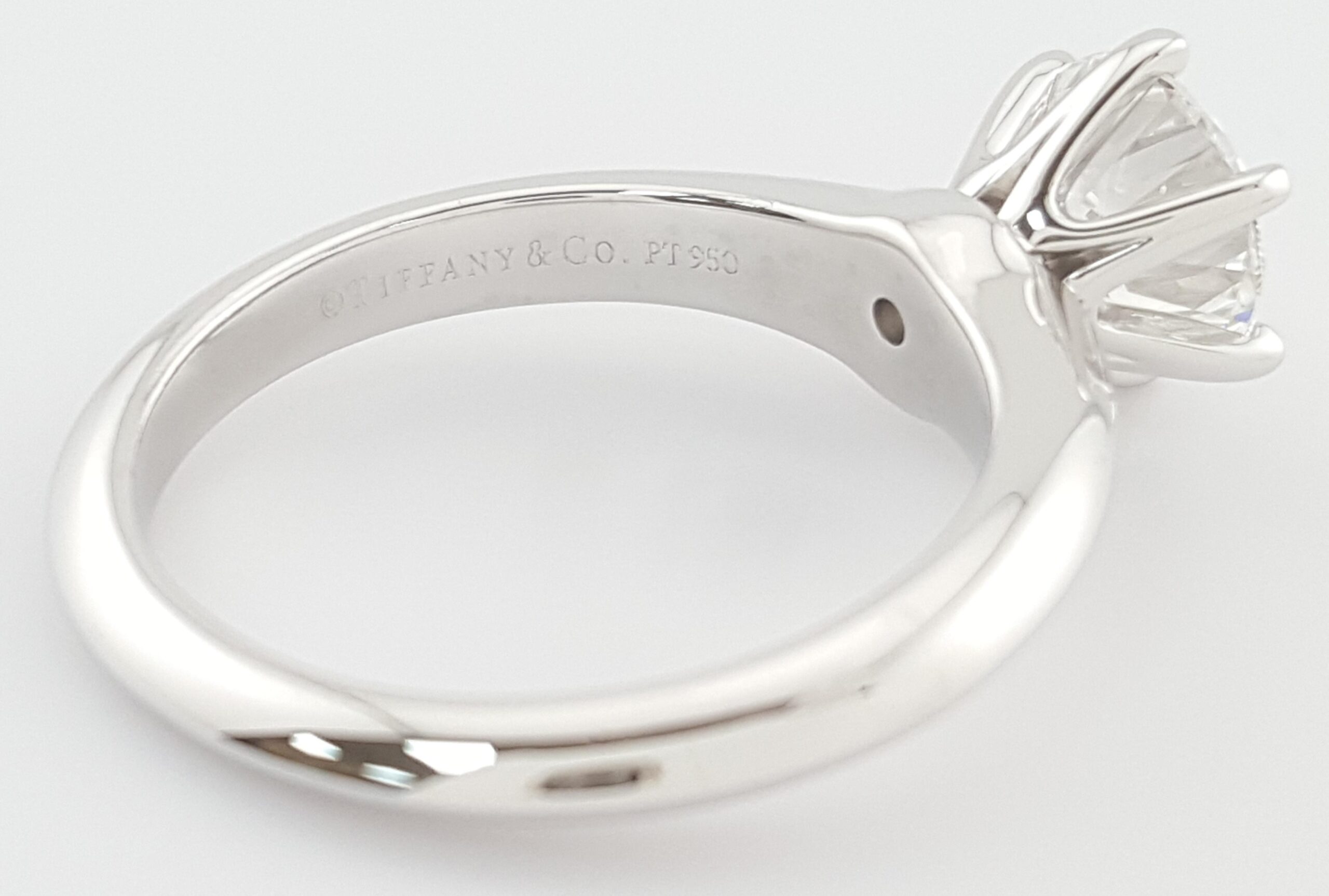 The ring is stamped "©TIFFANY & CO. PT 950 3220**** D1.16CT".