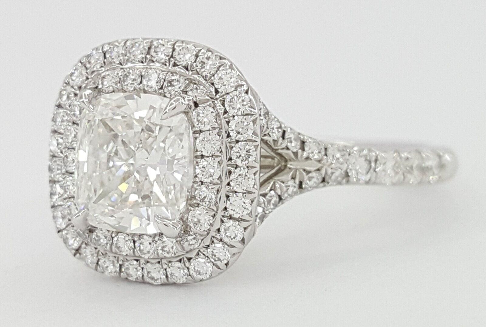 Tiffany & Co Soleste® 1.45 ct Cushion Diamond Halo Engagement Ring F/IF $32.2k