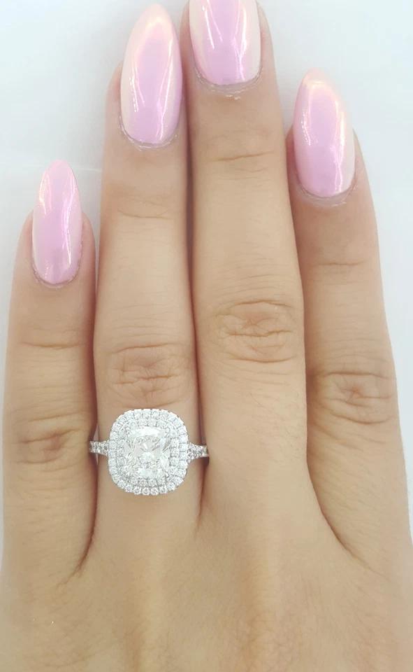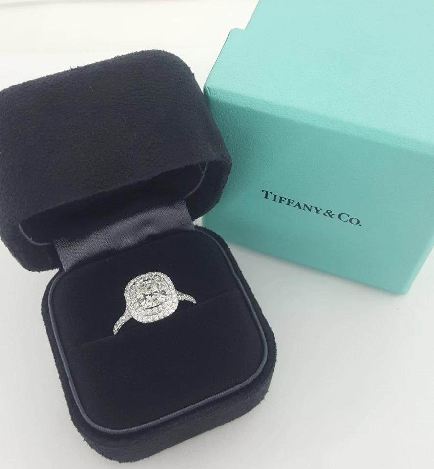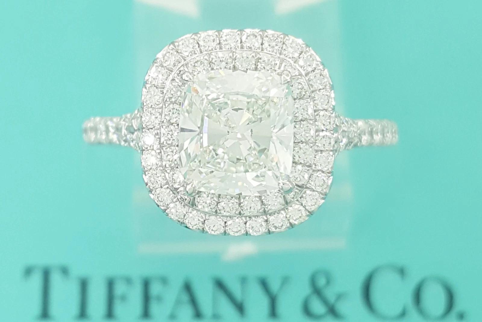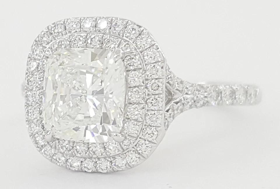 Tiffany & Co Soleste Cushion Double Halo Diamond Engagement Ring 1.99 ct Rt $53k