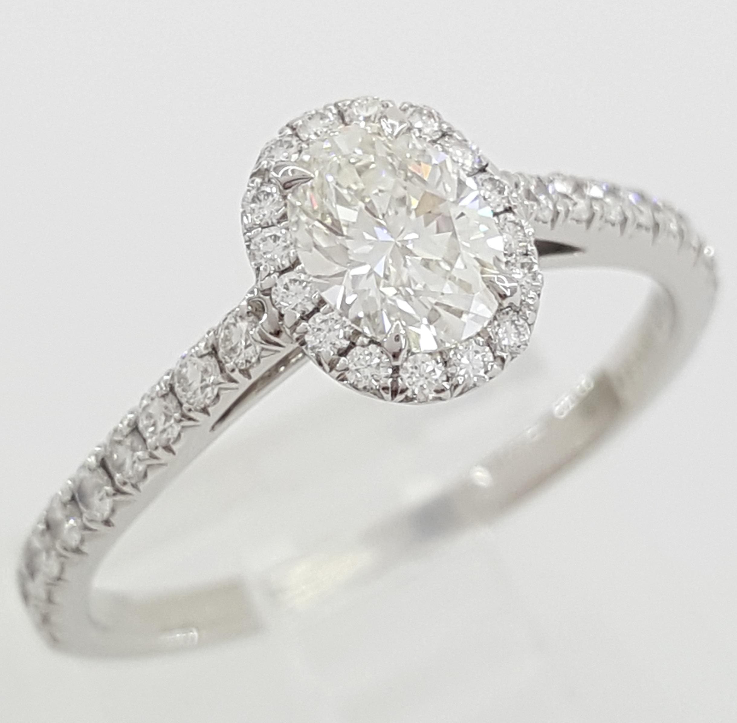 Tiffany & Co Soleste Oval Diamond Halo Platinum Engagement Ring 0.7 ct Rtl $8K