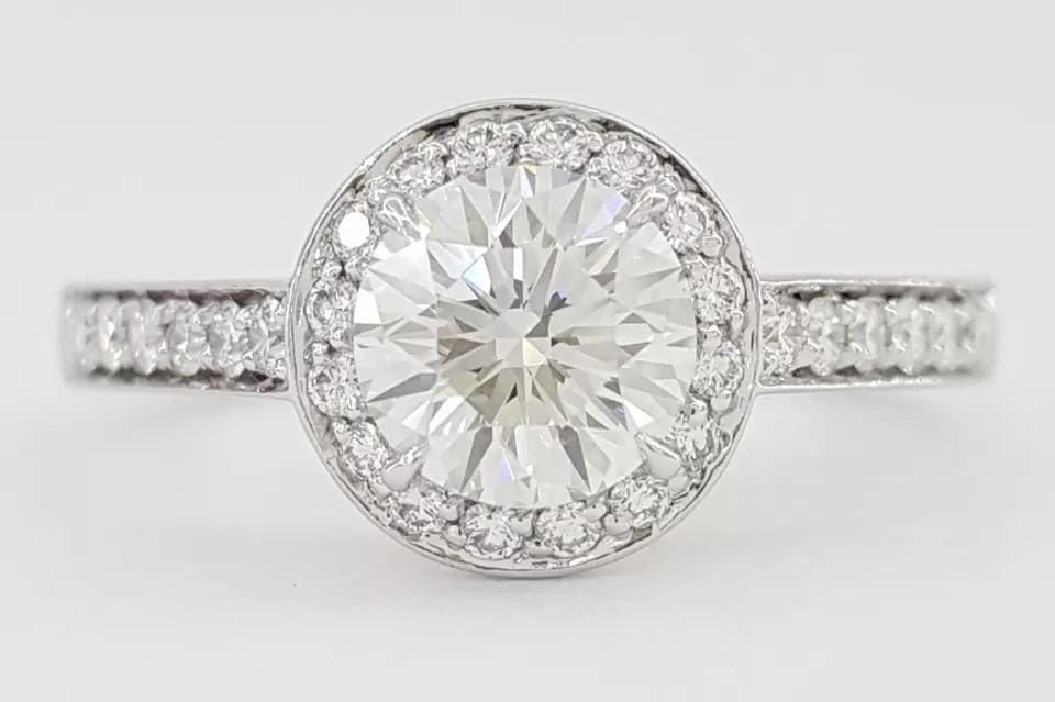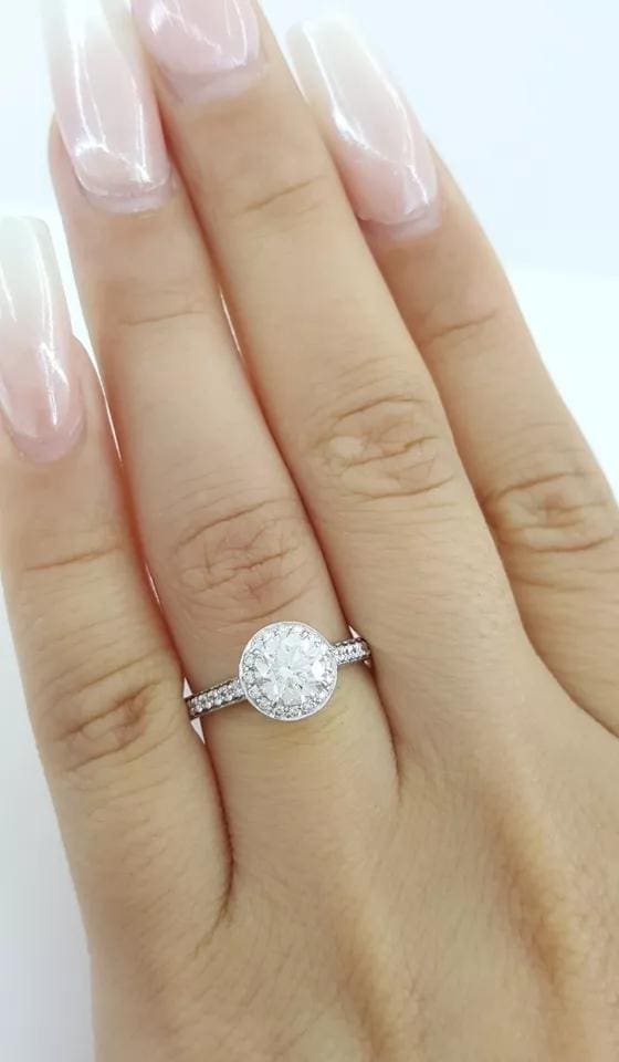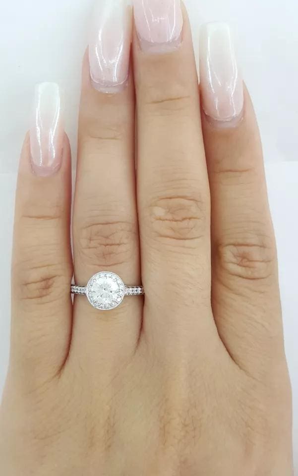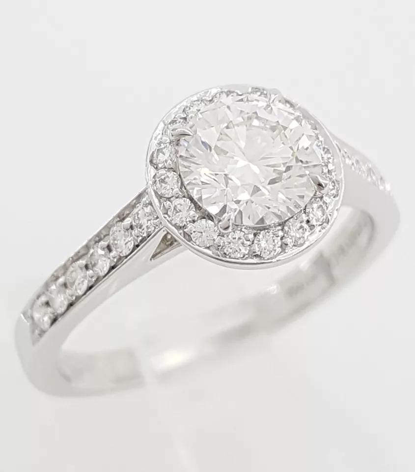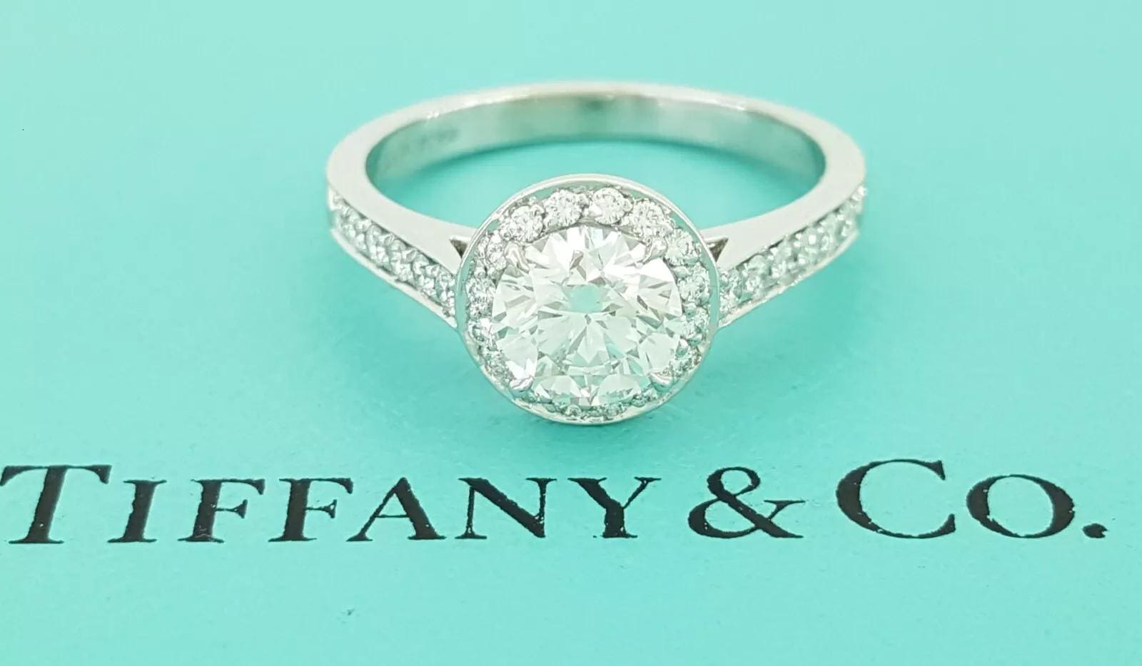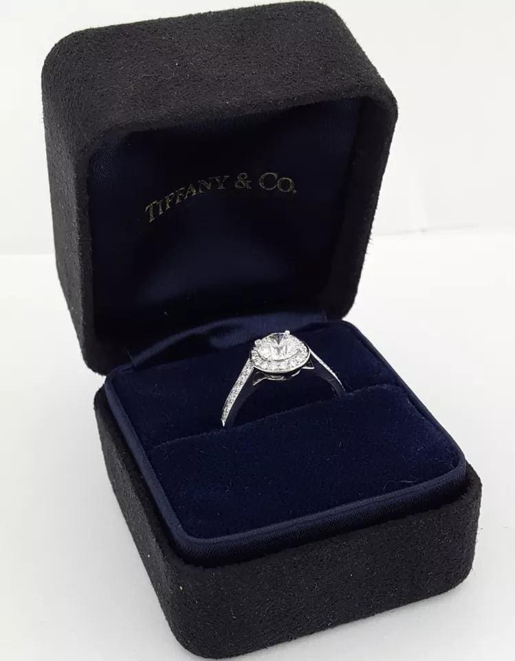 Tiffany & Co Soleste Round 1 ct Diamond Halo Platinum Engagement Ring Rtl 15K