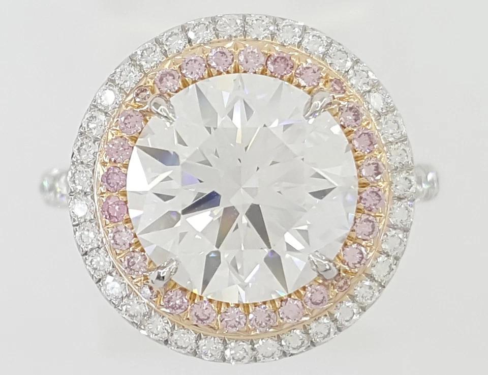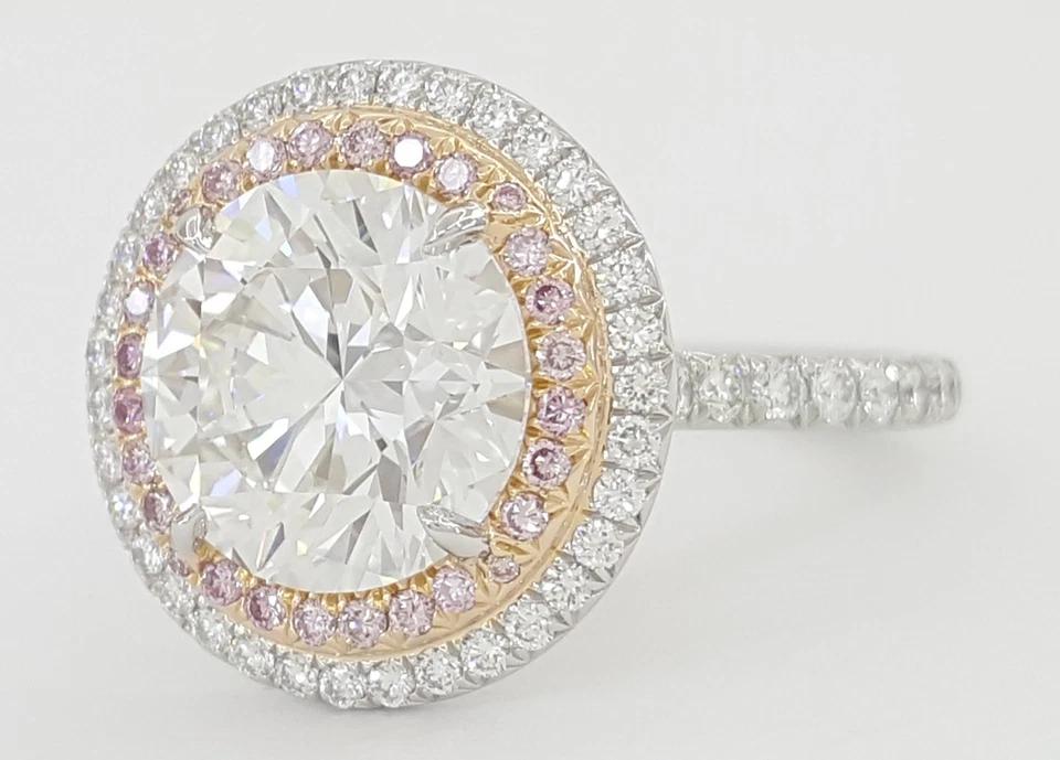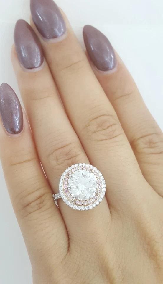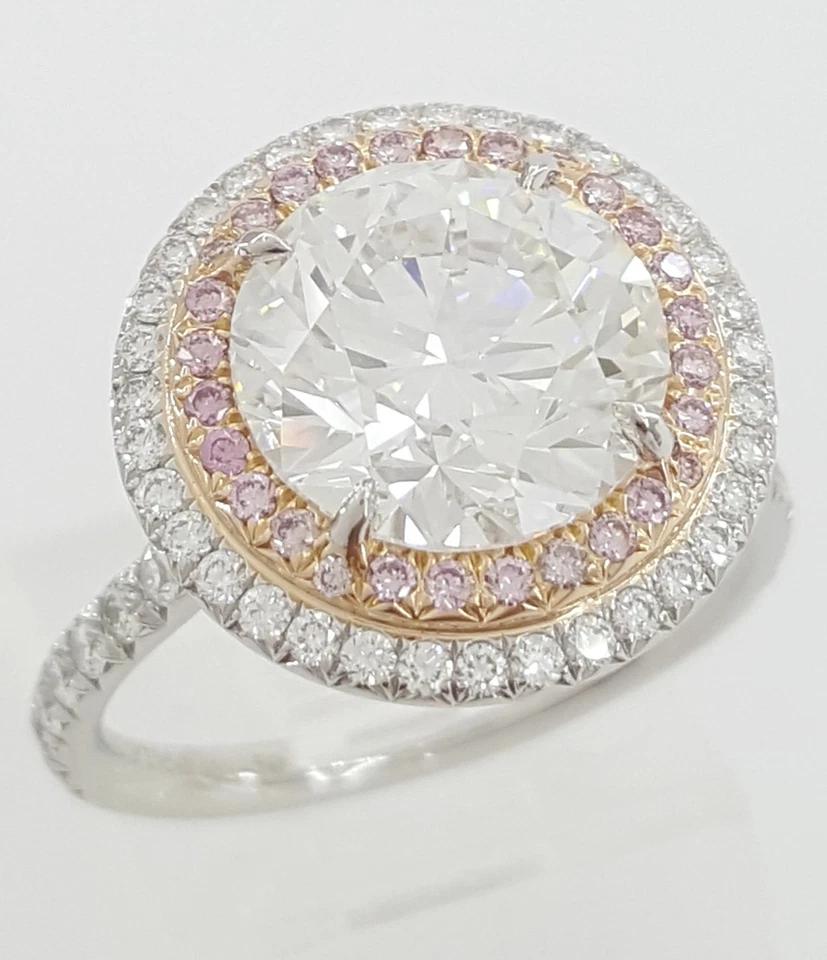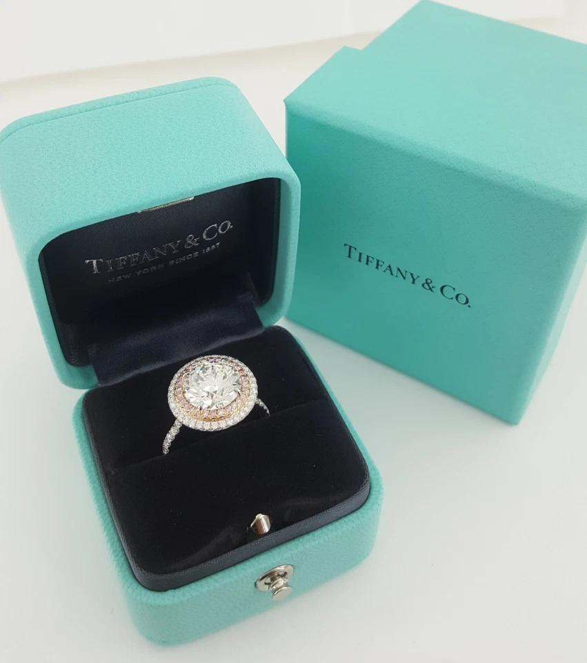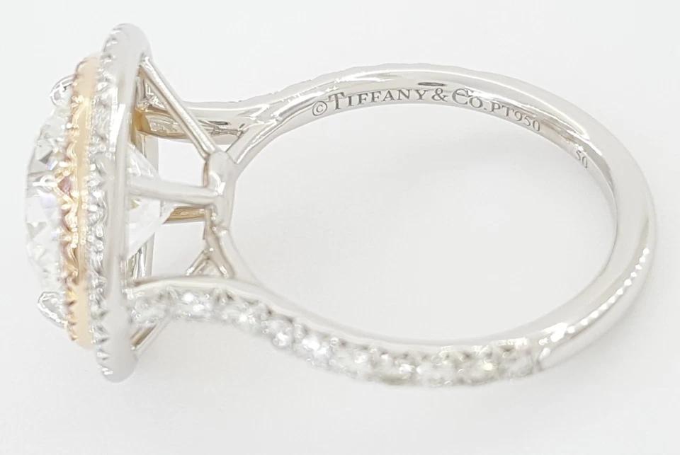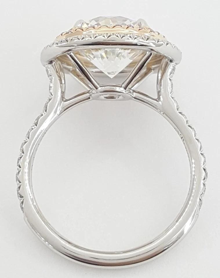 You are buying an Authentic Tiffany & Co. 4.17 ct Soleste Round Brilliant Cut Diamond Double Halo Engagement Ring in Platinum & 18K Rose Gold.