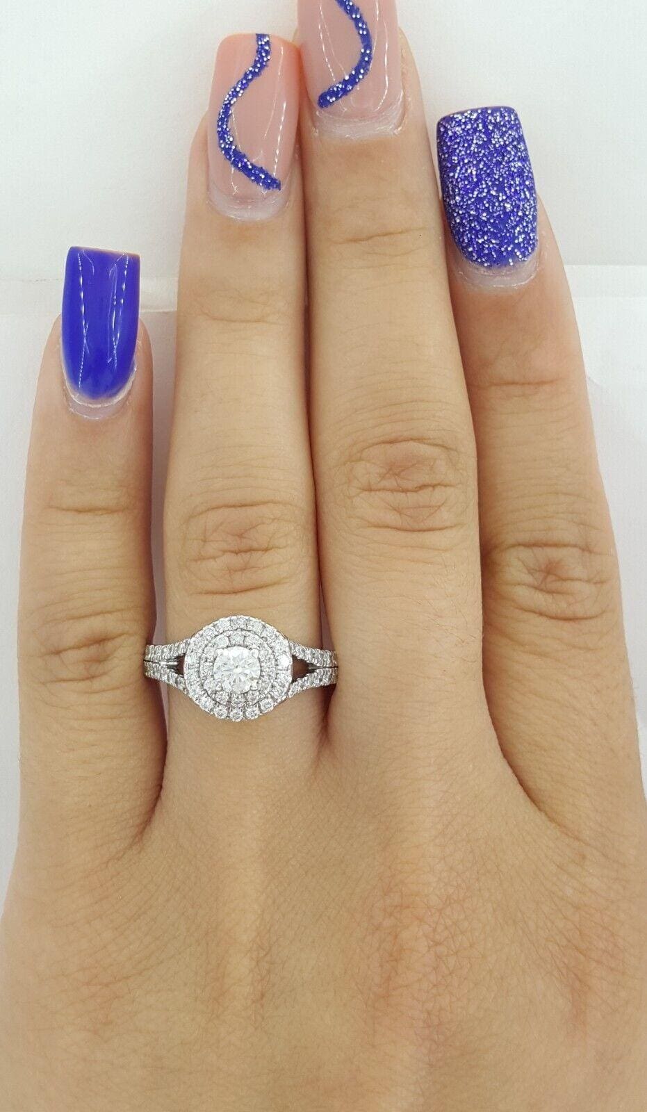 You are Purchasing a Tolkowsky 1 ct Total Weight Round Brilliant Cut Diamond Double Halo Split-Shank 14k White Gold Engagement Ring.