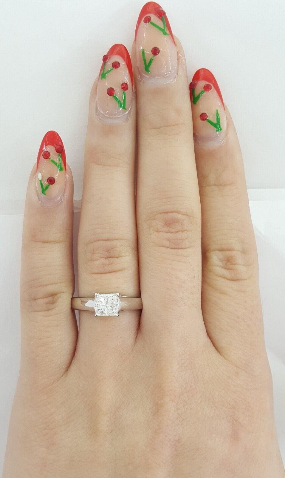 Tolkowsky Princess Ideal Cut Diamond Solitaire Engagement Ring 0.96ct 14k W Gold