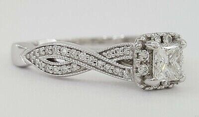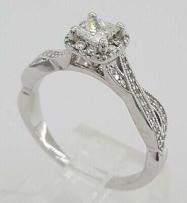 You are Purchasing 0.80 ct Total Weight 14K White Gold Princess Cut Diamond Halo Engagement Ring.