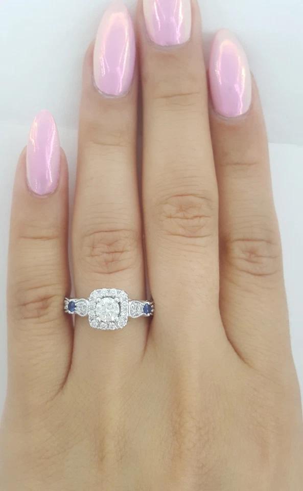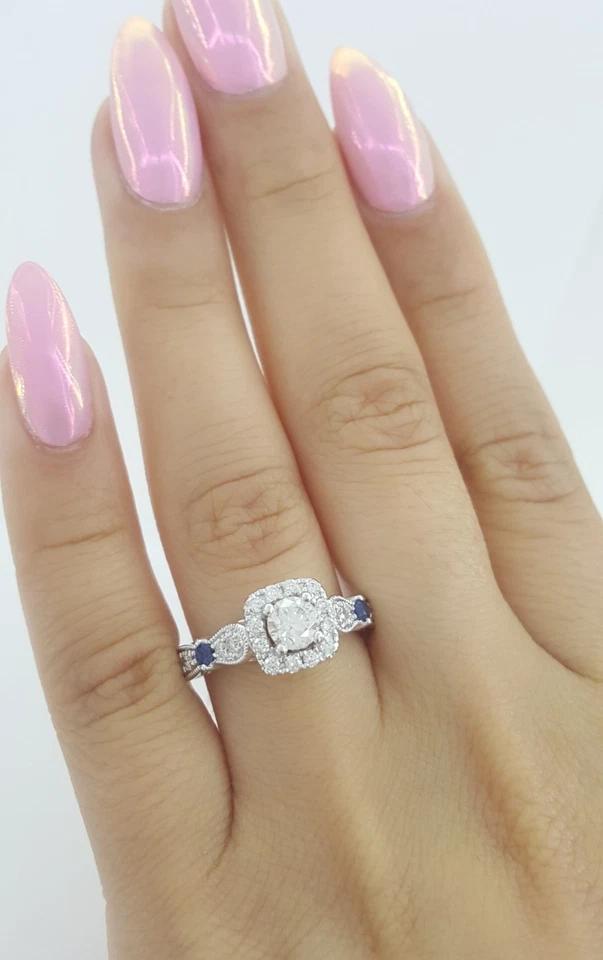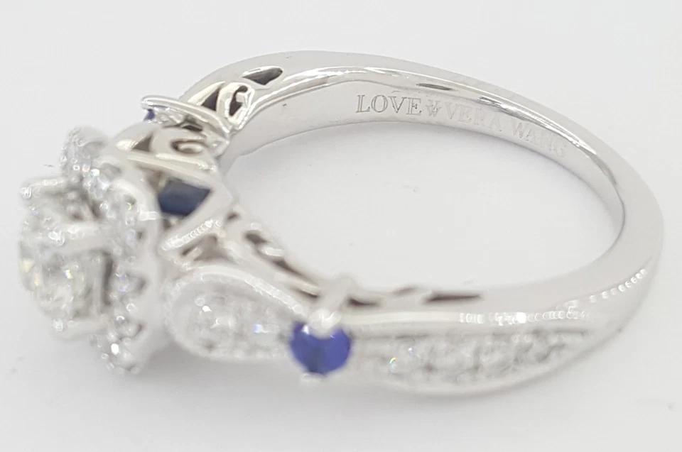 You are Purchasing a Vera Wang Love Collection 0.78 ct 14k White Gold Natural Round Brilliant Cut Diamond Halo Frame Engagement Ring.