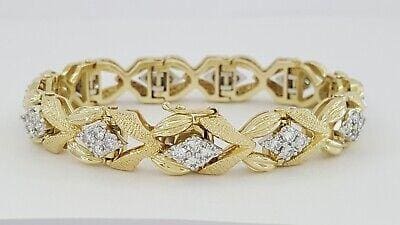 Vintage 1.76 ct Round Cut Diamonds 14K Gold Ribbon Tennis Bracelet 31 Grams 6″