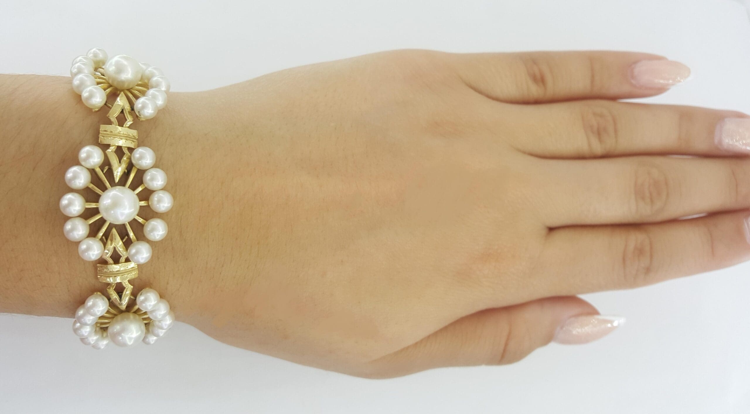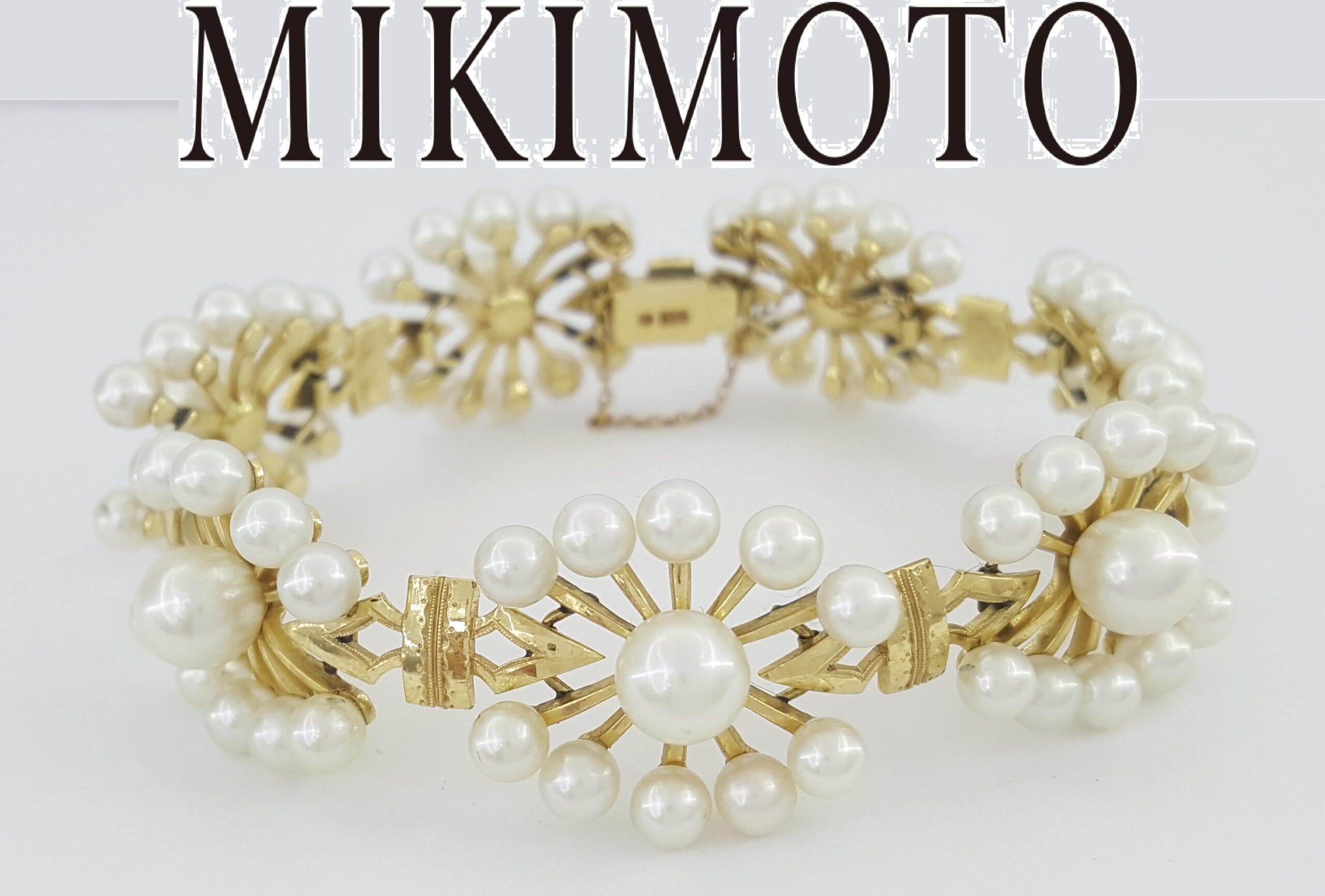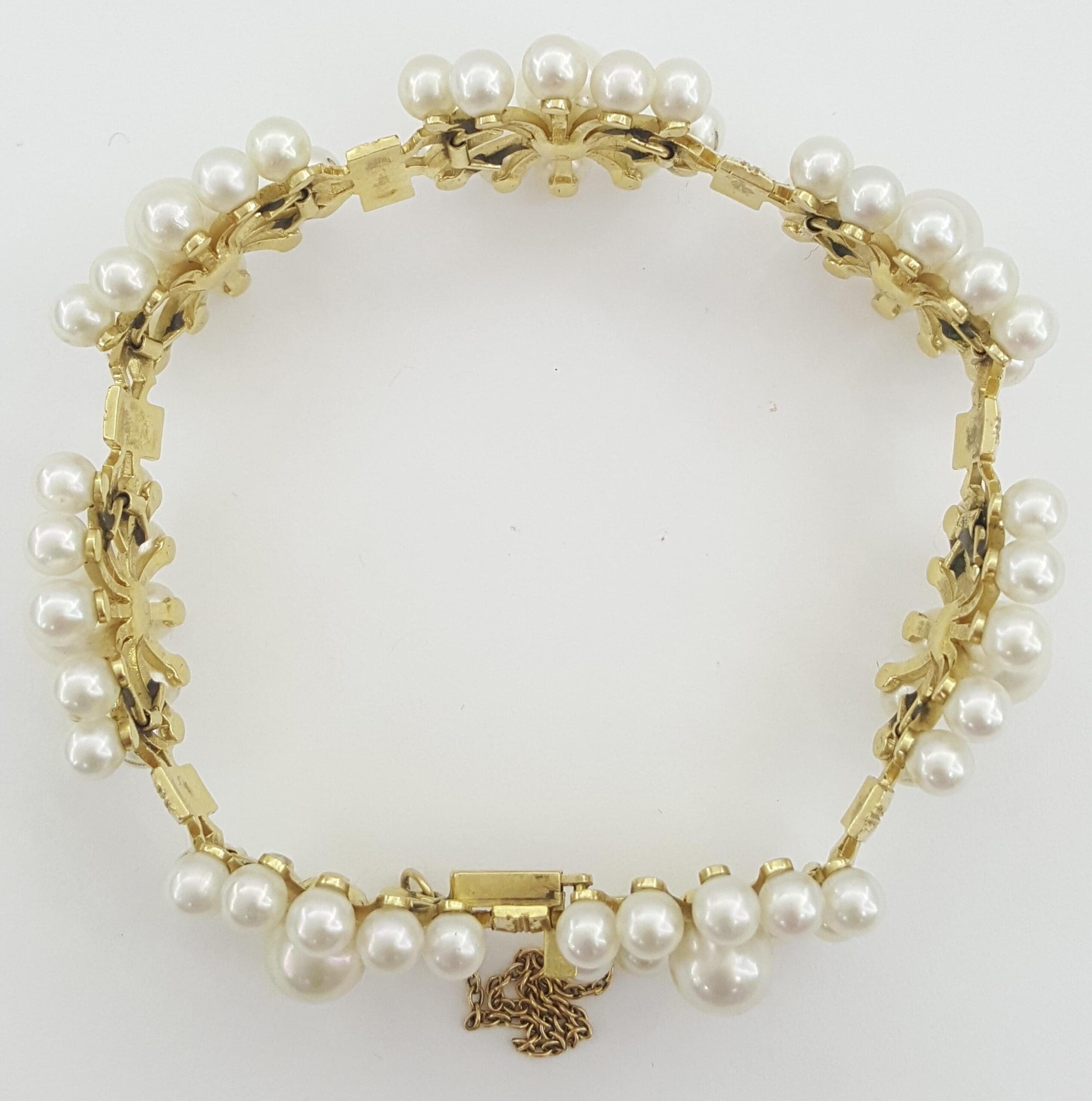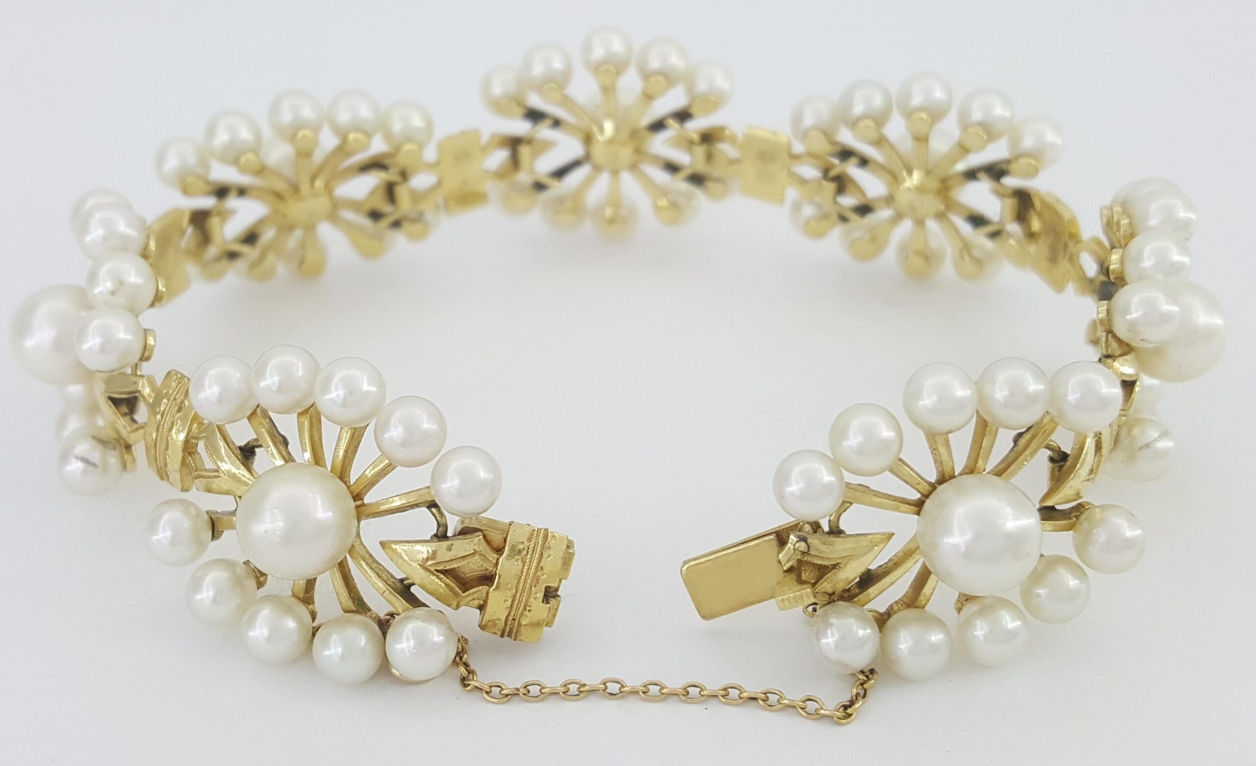 You are Buying a Vintage Mikimoto Pearl Floral Cluster 7 Sections Links Bracelet 14k Yellow Gold