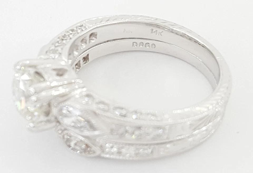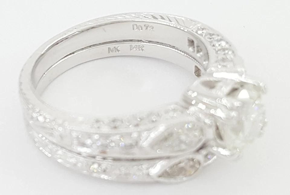 You are Purchasing a 2.34 ct Total Weight Round Brilliant Cut Diamond 14k White Gold Engagement Ring & Band Set.