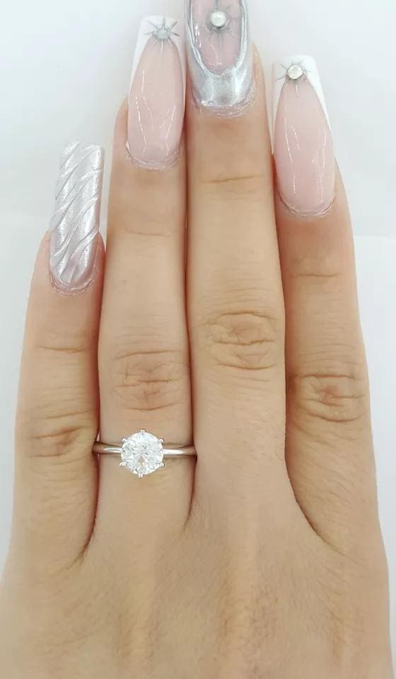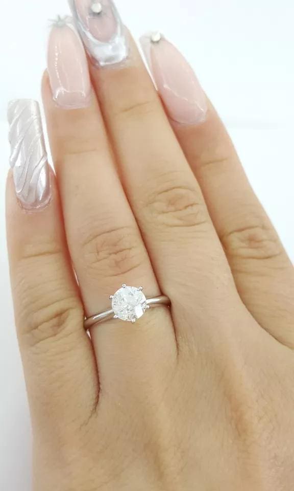 The ring weighs 2.1 grams, size 6.75, the center stone is a Natural Old European Cut diamond weighing 1.11ct, I color, VVS2 in clarity.