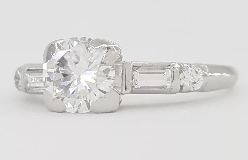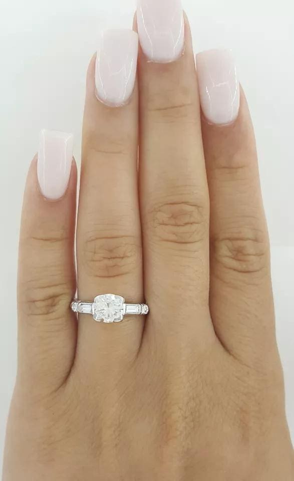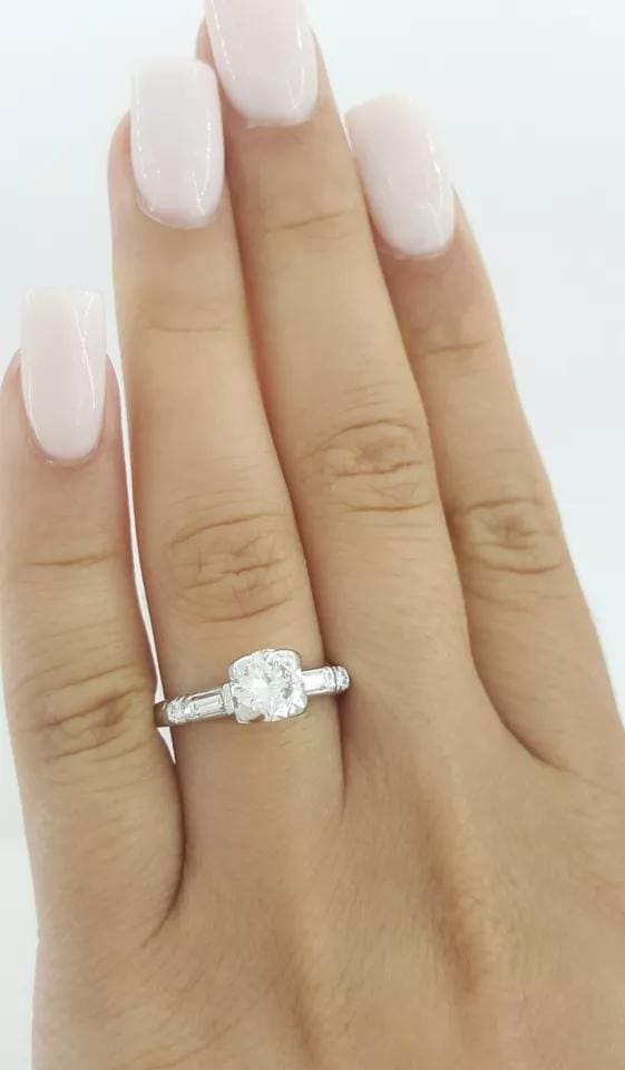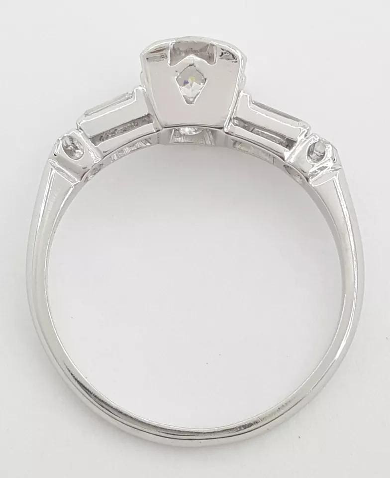 The ring weighs 4 grams, size 7, the center stone is a Natural Old European Cut diamond weighing approximately 0.72 ct, G-H in color, VS in clarity.