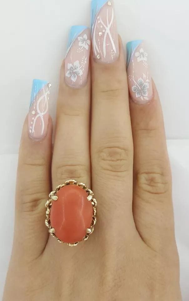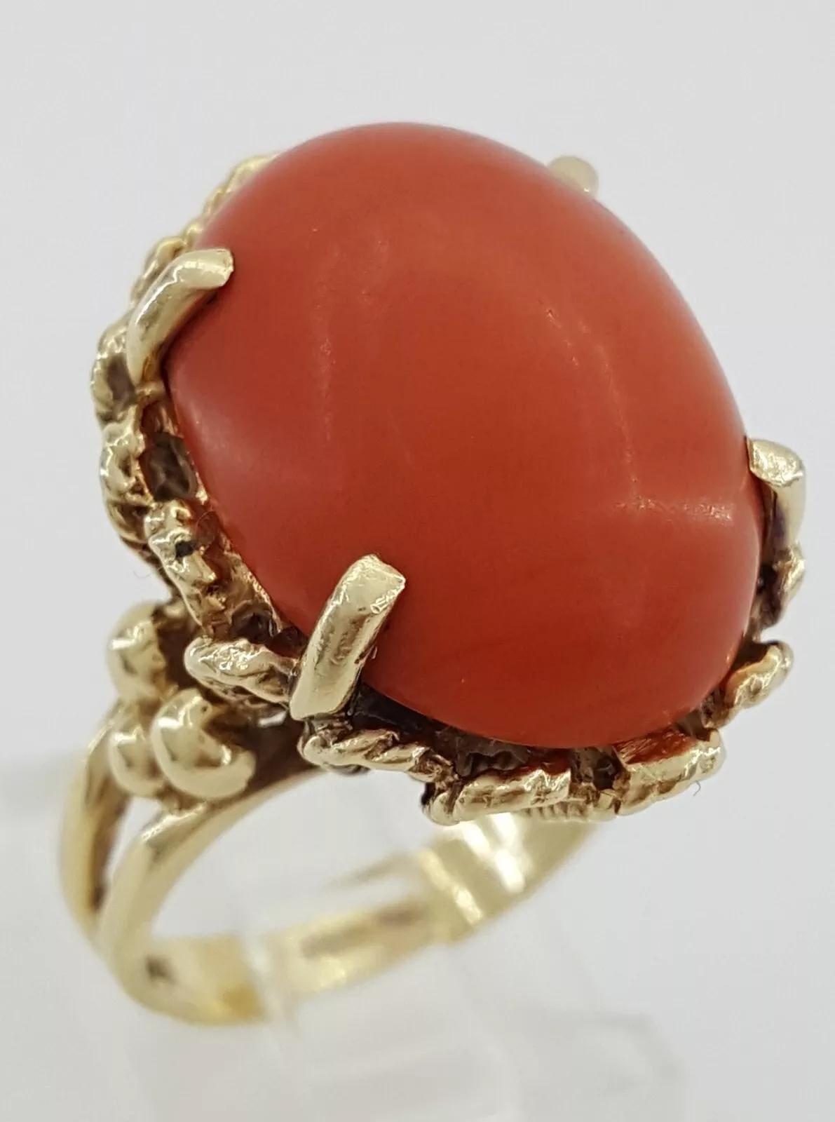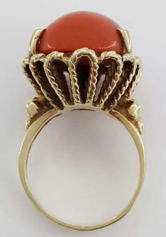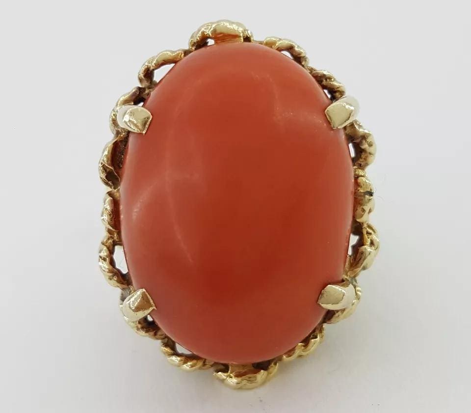 You are purchasing a Vintage 20 x 14.7 Oval Cabochon Coral Statement / Cocktail Ring in 14k Yellow Gold