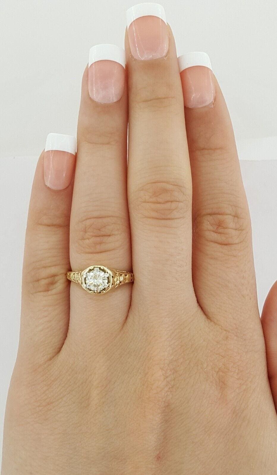 You are purchasing a 0.5 ct total weight Vintage Round Brilliant Cut Diamond Solitaire 14k Yellow Gold Engagement Ring.