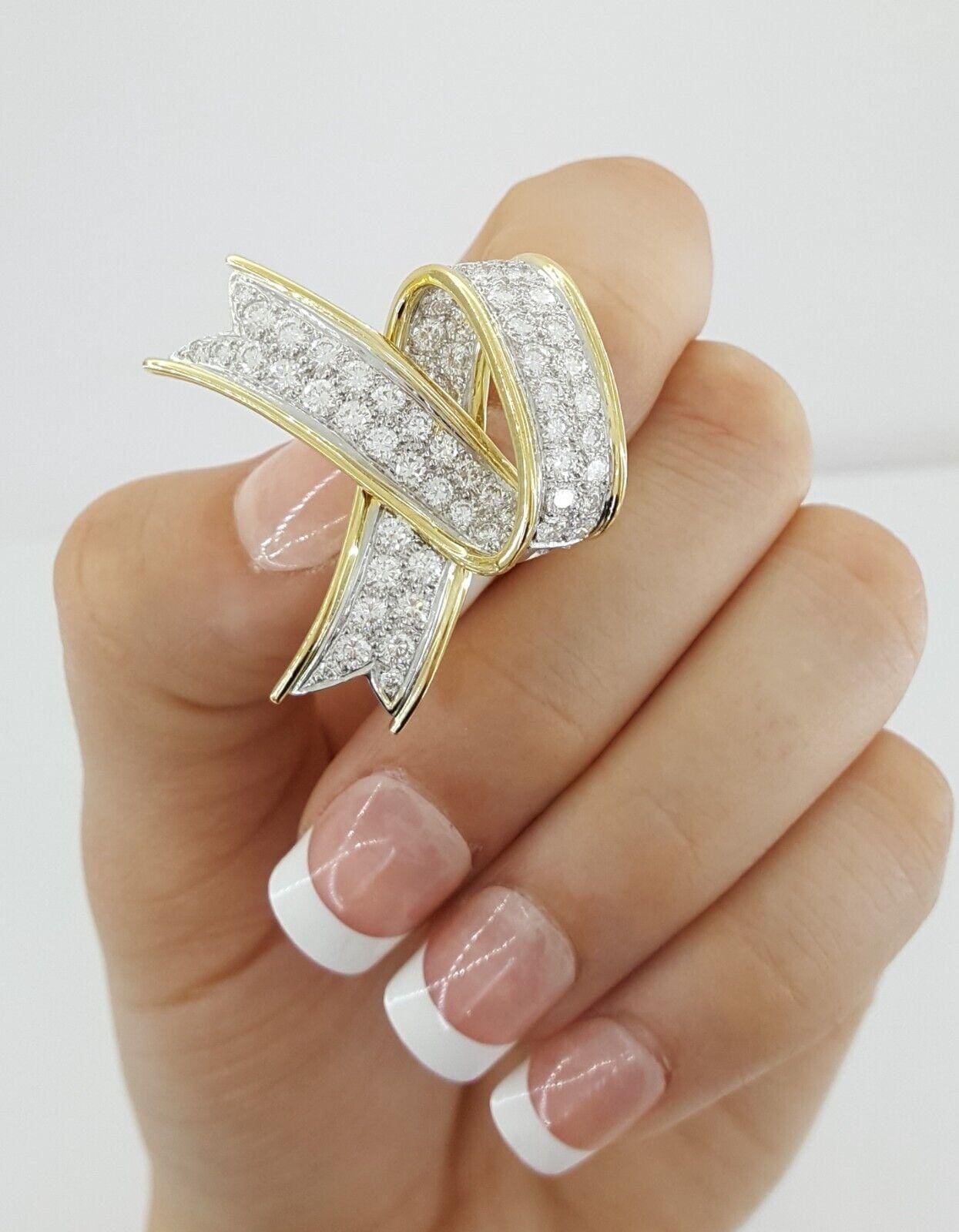 Vintage Tiffany & Co Diamond Bow Ribbon Brooch Pin Pendant 18k Platinum 2.88 ct