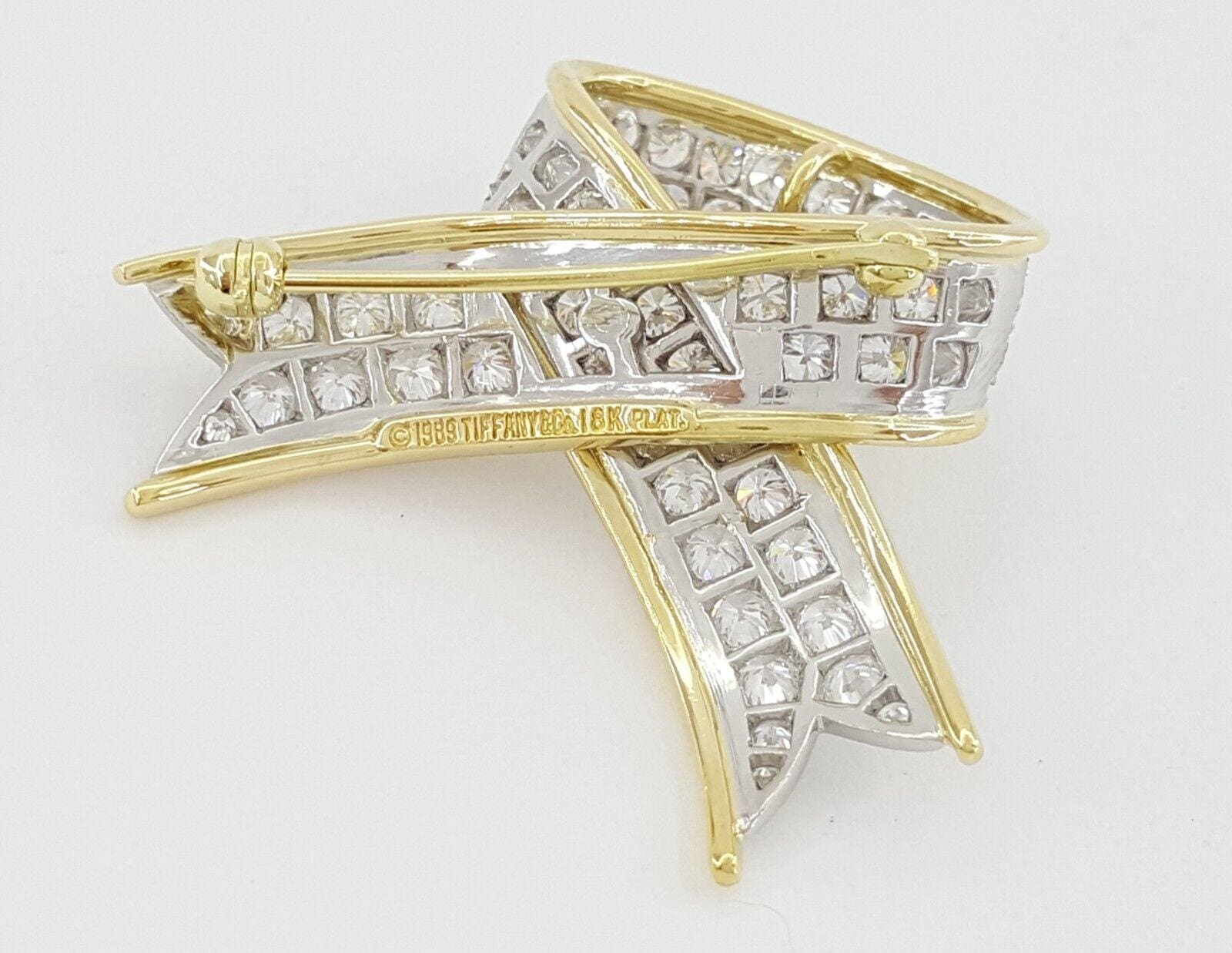 You are Buying an Authentic Vintage Tiffany & Co. Platinum & 18K Yellow Gold 2.88 ct Round Cut Diamond Bow Ribbon Brooch / Pin Pendant.
