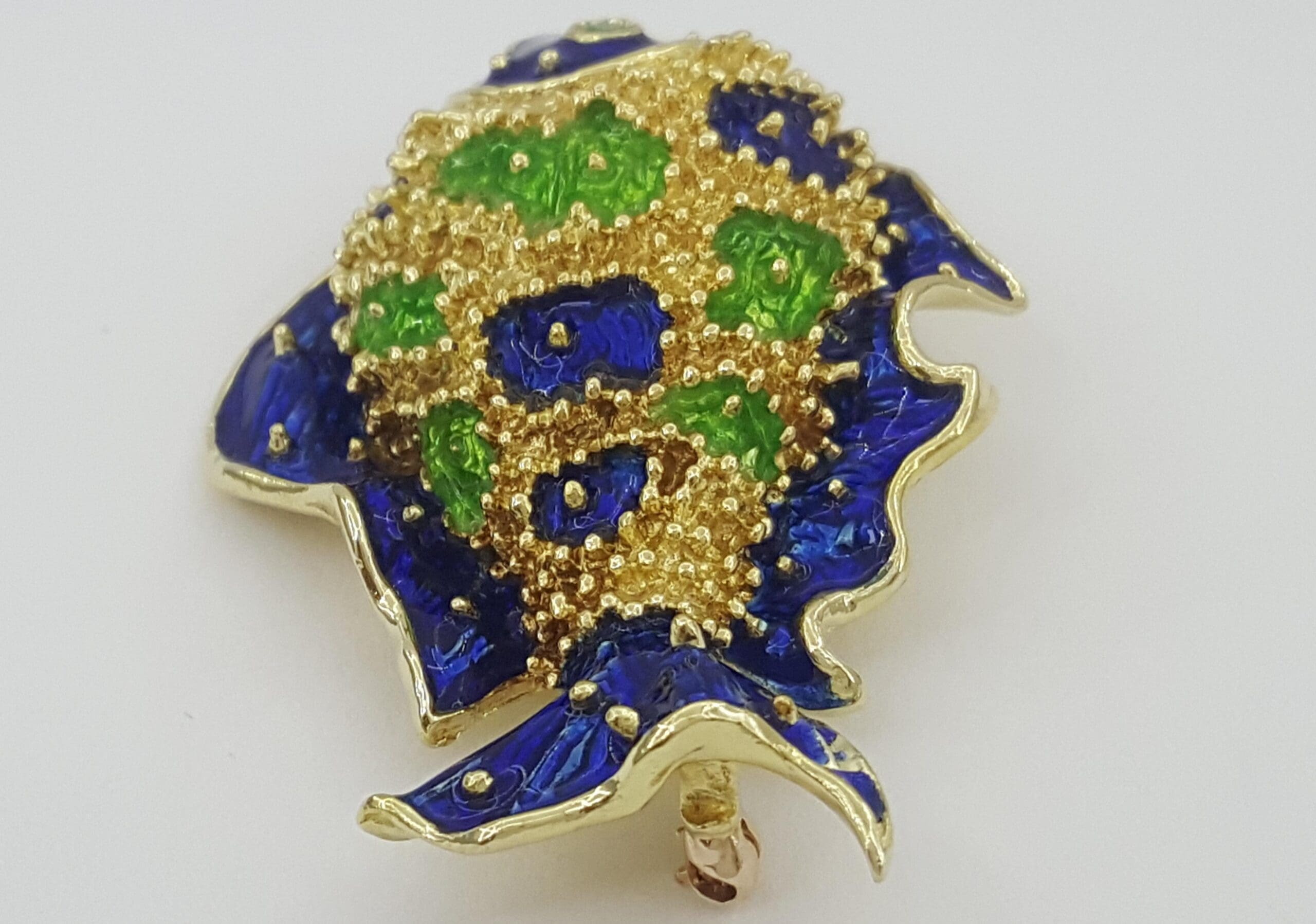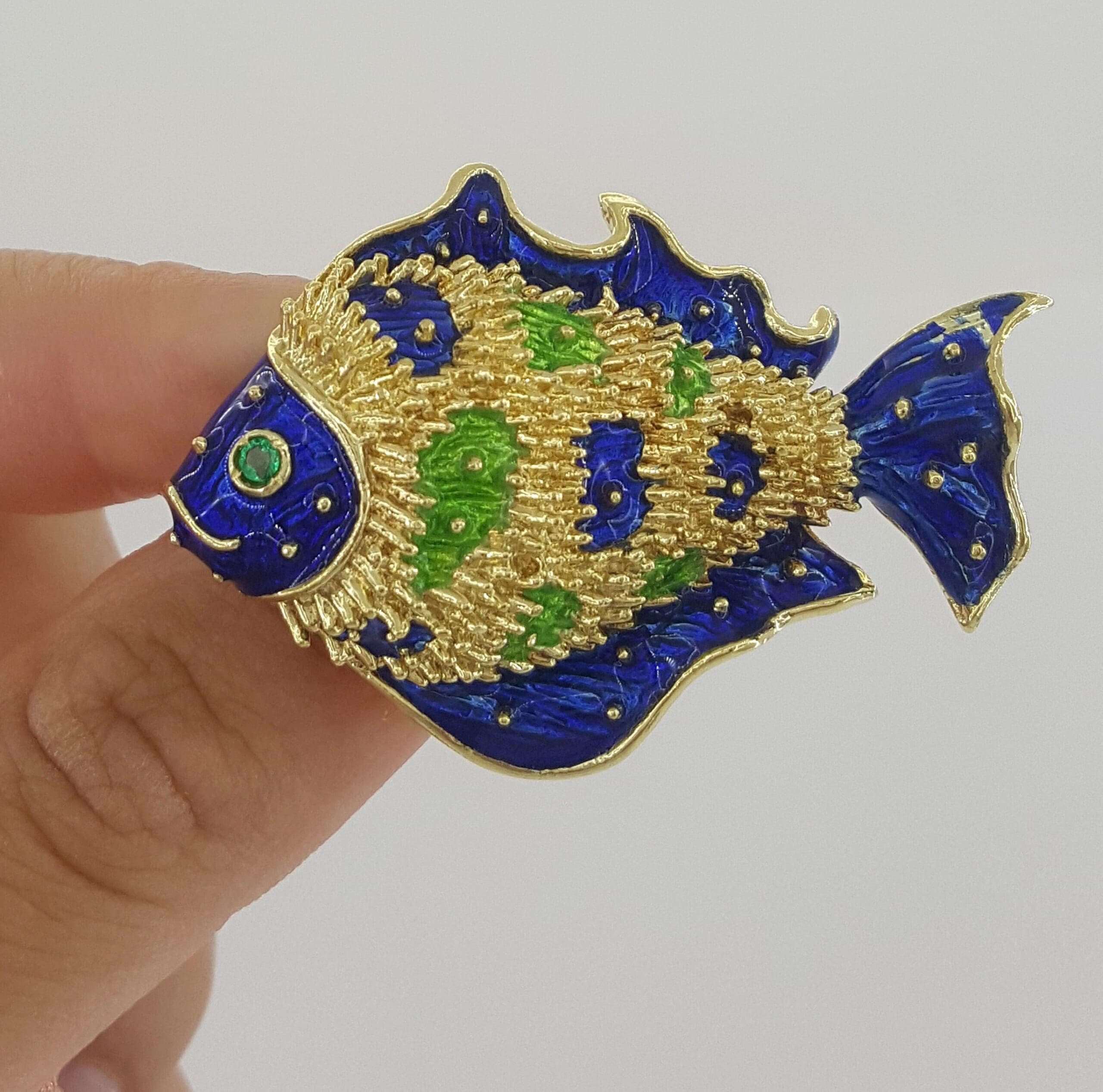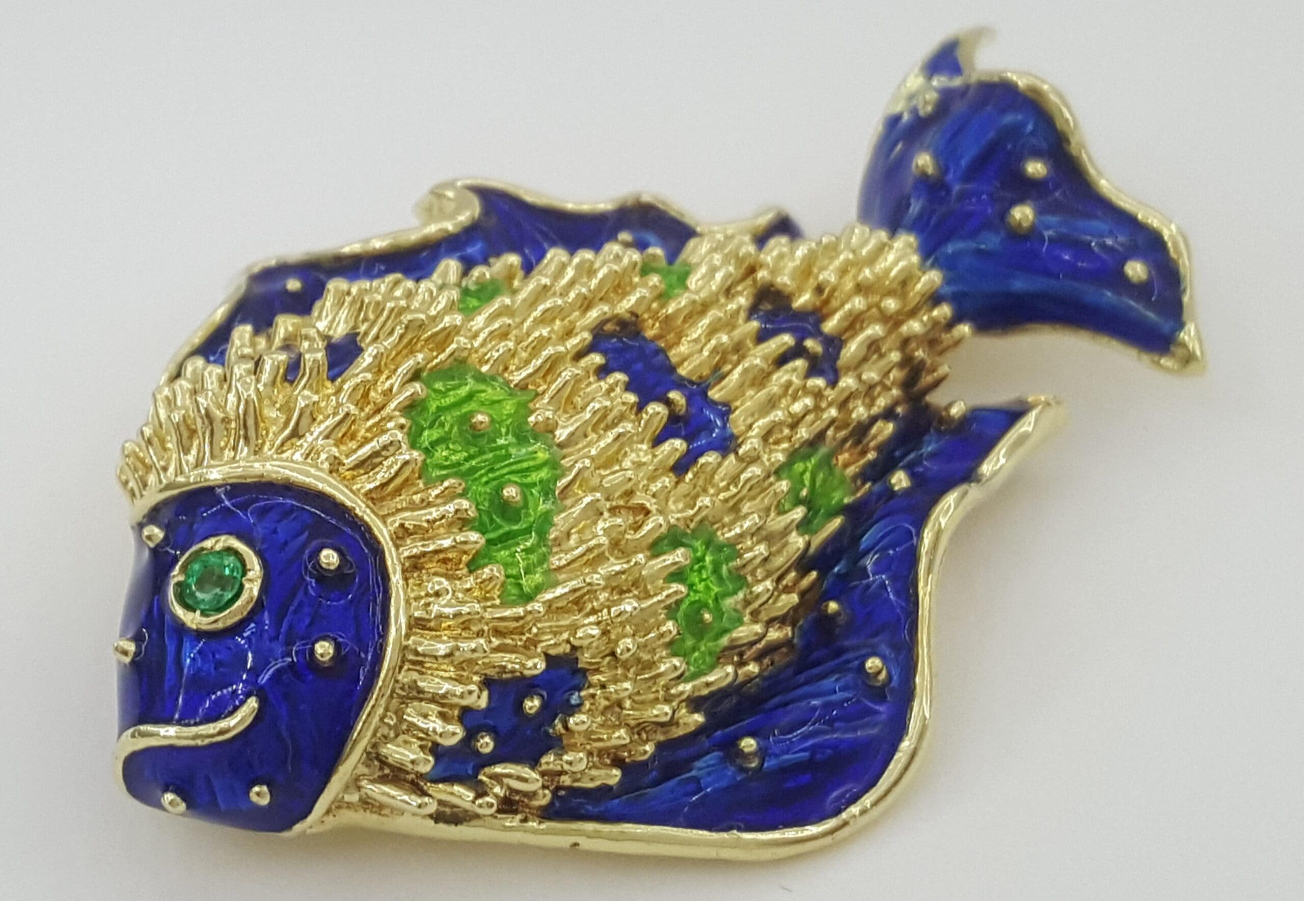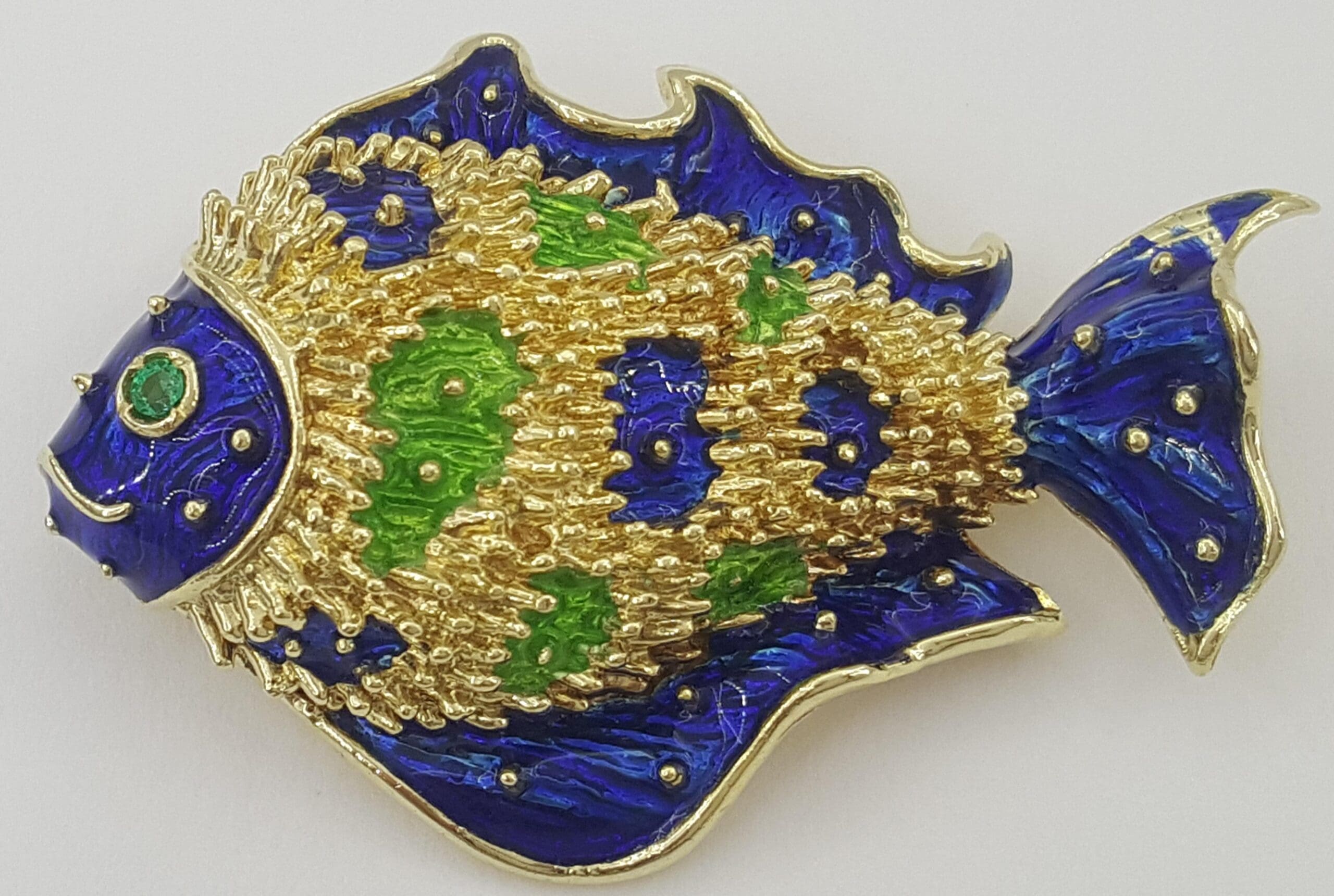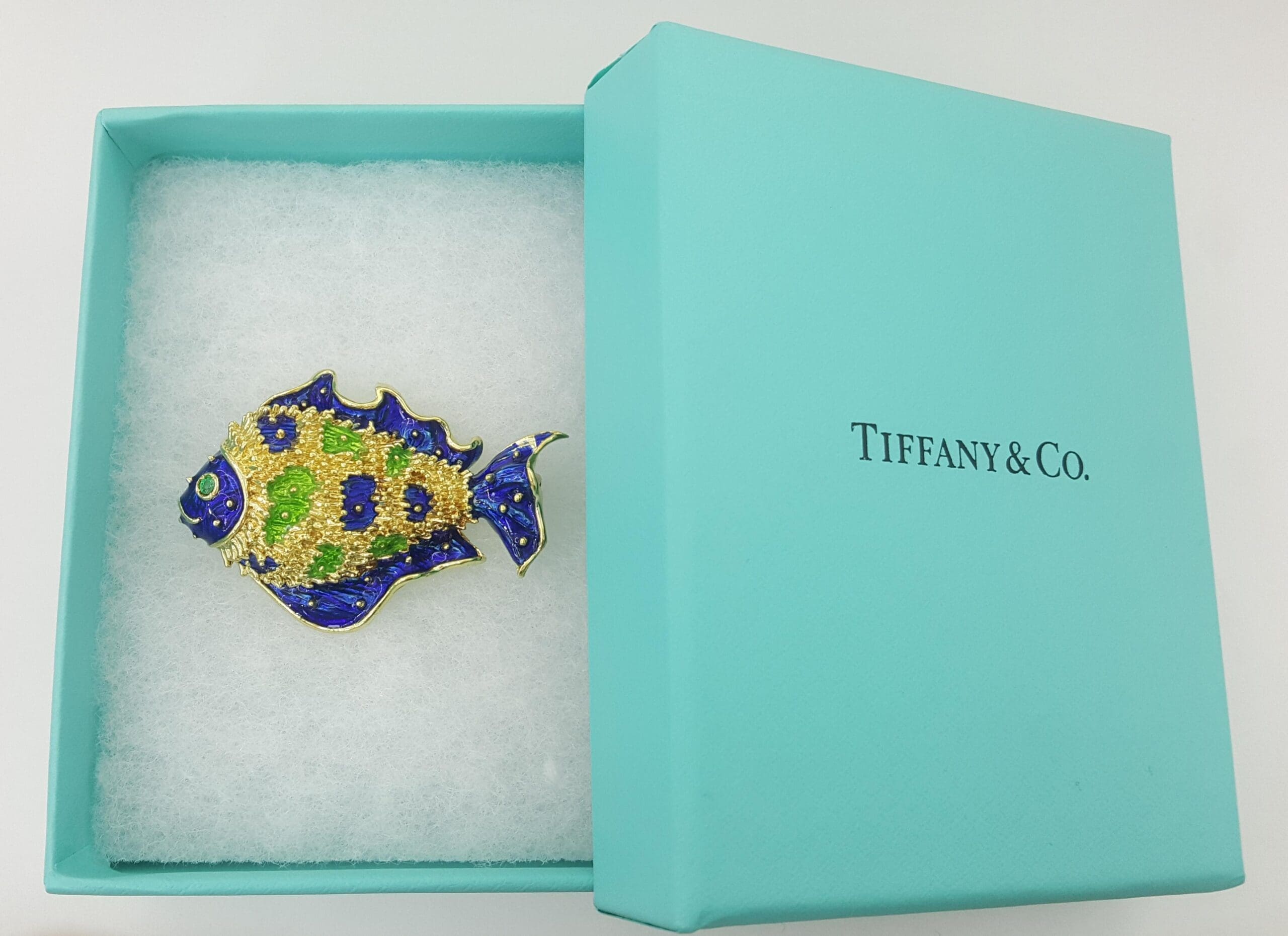 Be the first to review “Vintage Tiffany & Co Donald Claflin Fish Brooch 18k Yellow Gold Enamel 1960s”