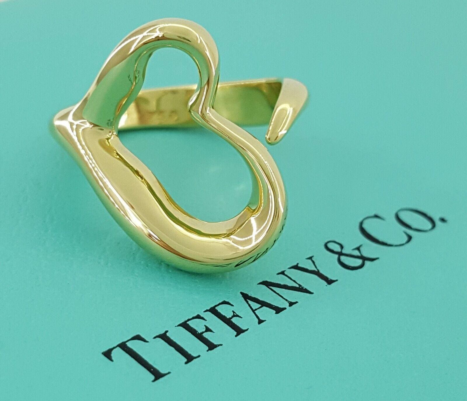 You are Purchasing a 100% Authentic Vintage Tiffany & Co. Elsa Peretti © 18K Yellow Gold Large Open Heart Ring.