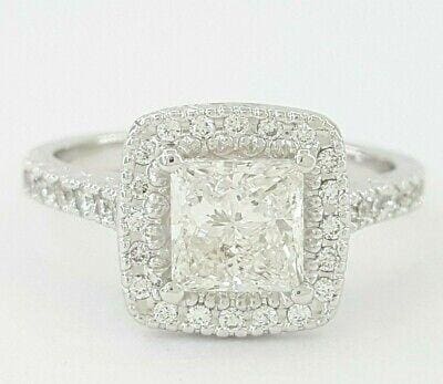 You are Purchasing a Flush Fitâ„¢ 1.24 ct Total Weight 14K White Gold Princess Cut Diamond Halo Engagement Ring.